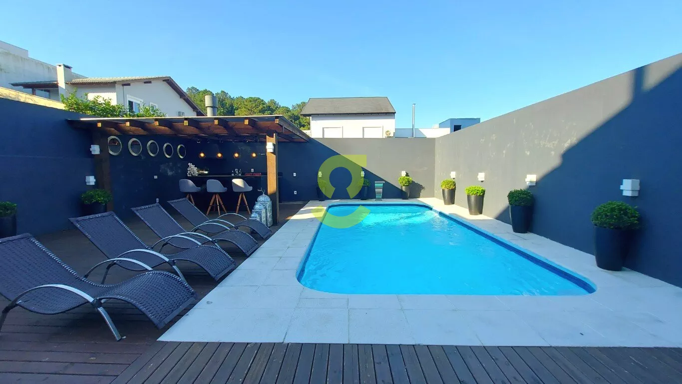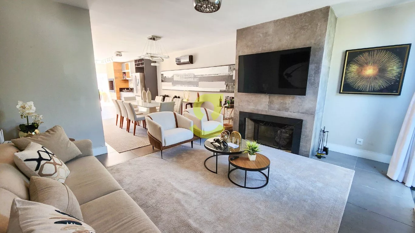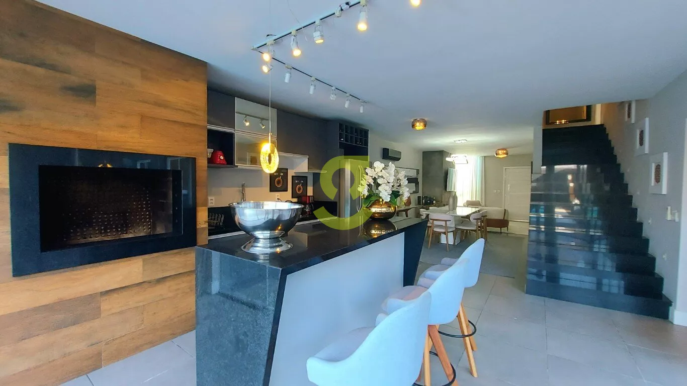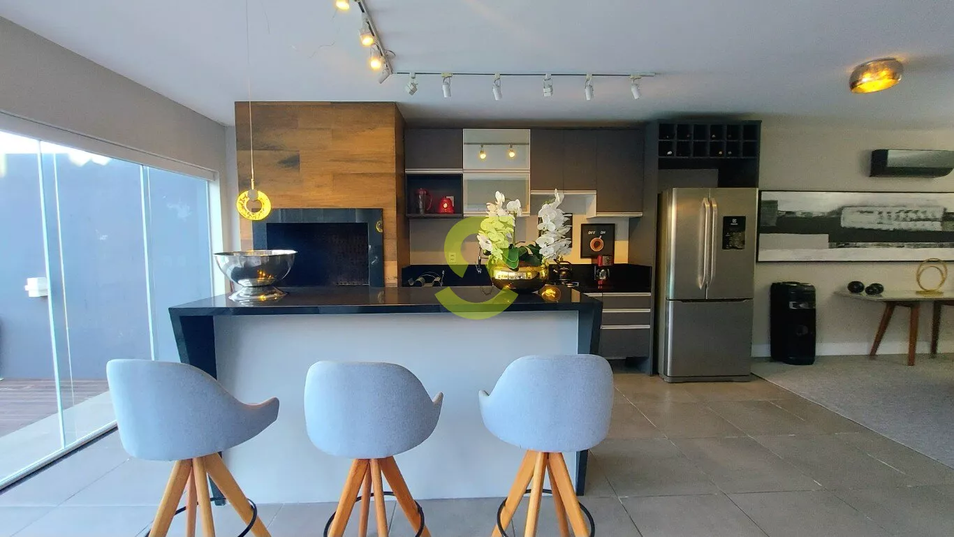 Casa exuberante de 360m², dividida em 2 pavimentos, estacionamento coberto de 3 a 4 carros, dependendo do porte, logo na entrada temos um pequeno depósito para guardar itens ou até mesmo as roupas logo que entra, com aquecedor de passagem eletrônico (junker), passando a entrada temos uma cozinha gourmet com churrasqueira, com uma linda ilha, integrada a sala de jantar e sala de estar com lareira, e um lavabo. Conceito totalmente aberto, com todos os ambientas se integrando de forma harmônica.