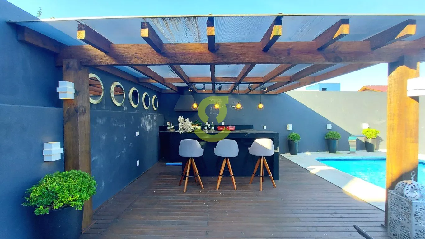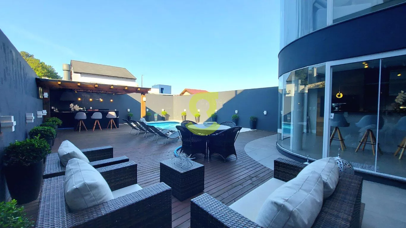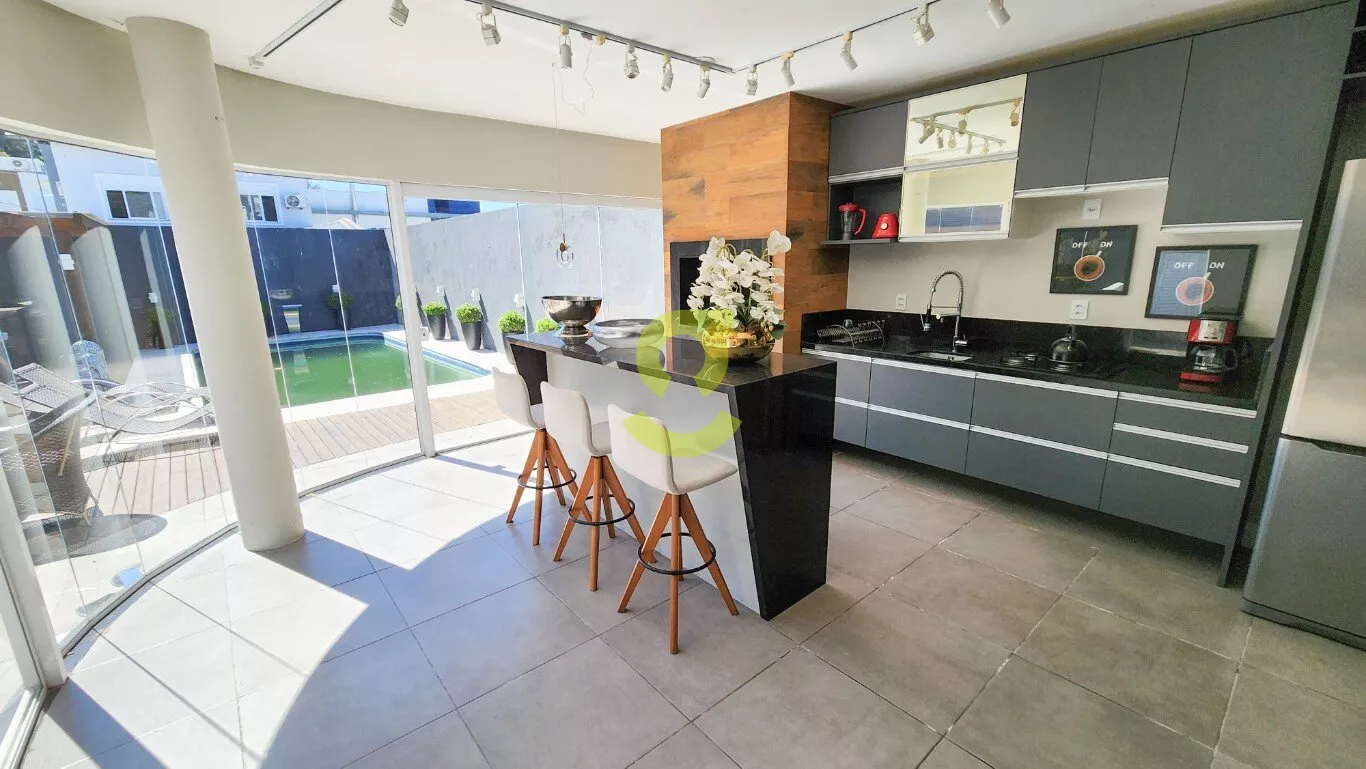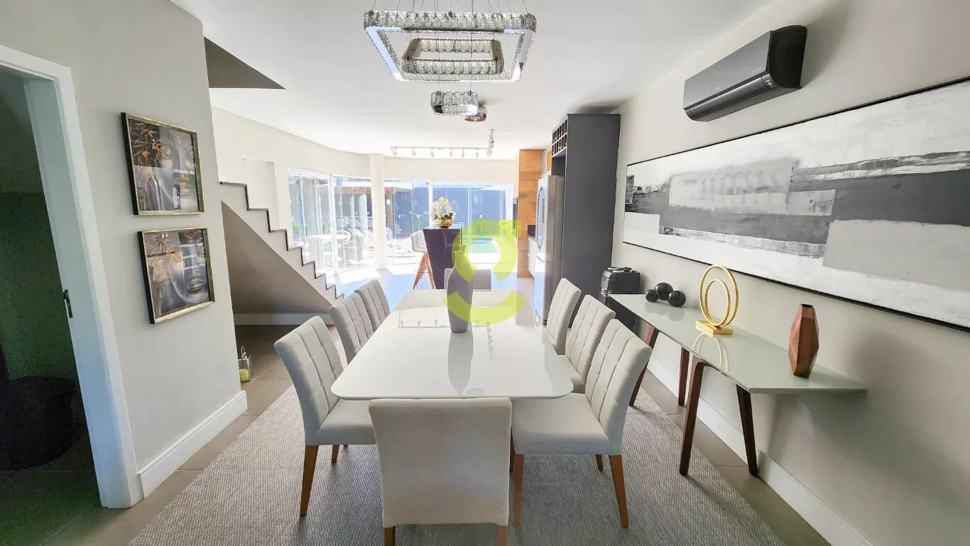 Casa exuberante de 360m², dividida em 2 pavimentos, estacionamento coberto de 3 a 4 carros, dependendo do porte, logo na entrada temos um pequeno depósito para guardar itens ou até mesmo as roupas logo que entra, com aquecedor de passagem eletrônico (junker), passando a entrada temos uma cozinha gourmet com churrasqueira, com uma linda ilha, integrada a sala de jantar e sala de estar com lareira, e um lavabo. Conceito totalmente aberto, com todos os ambientas se integrando de forma harmônica.