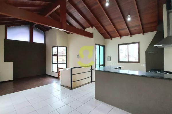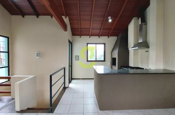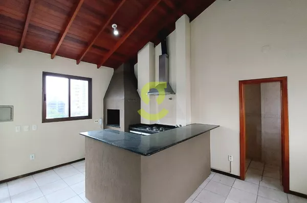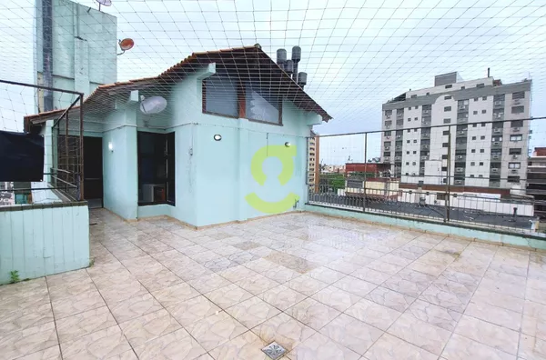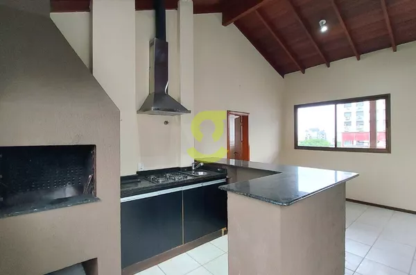 Cobertura ampla, com área gourmet e churrasqueira, laleira, banheiro, amplo terraço.