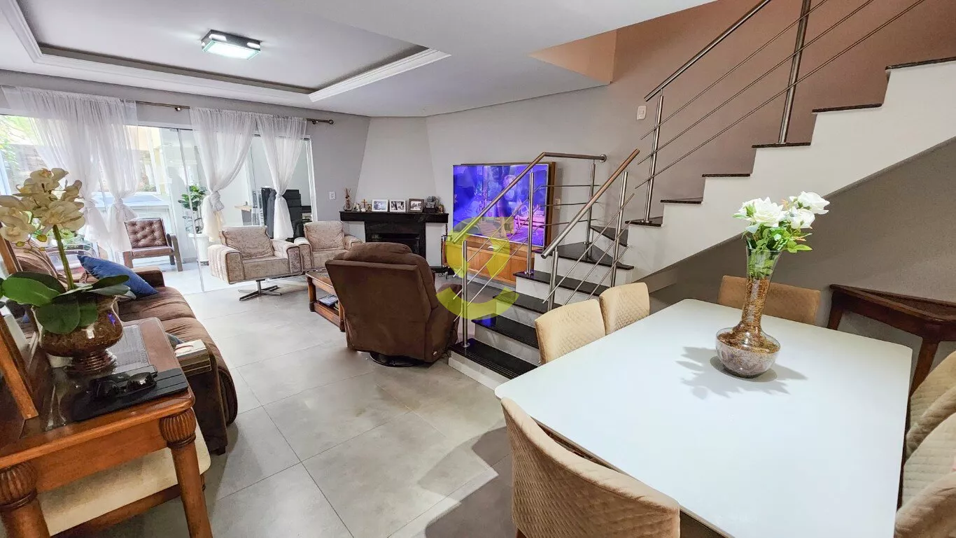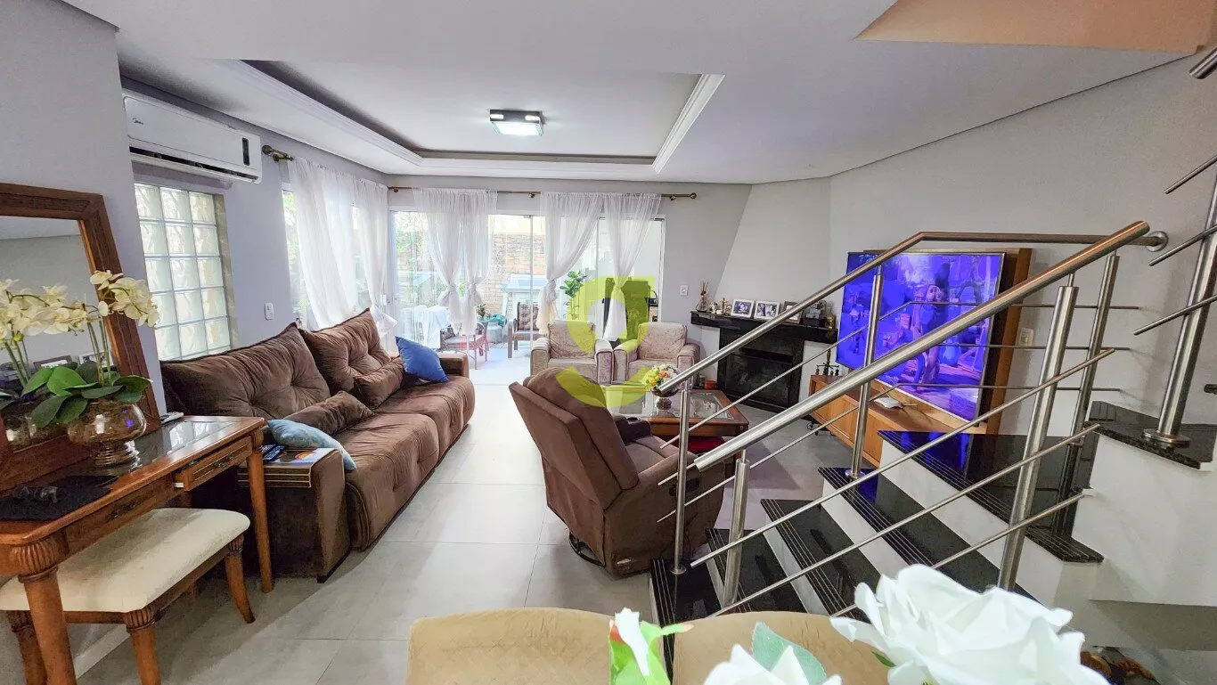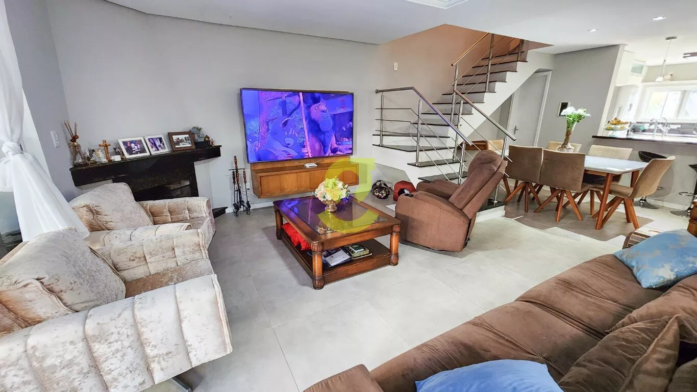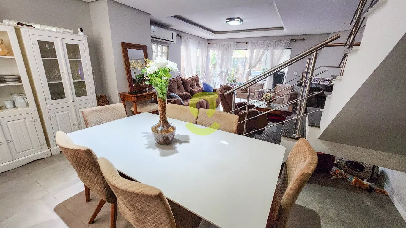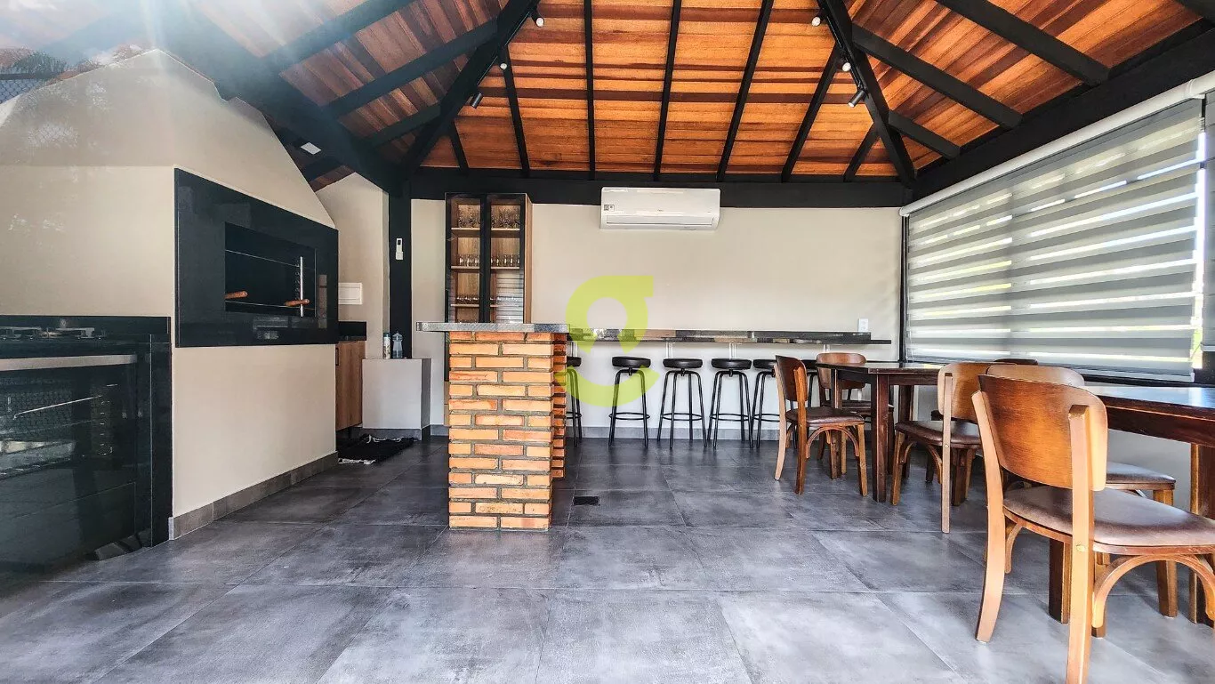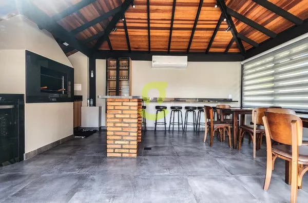 Ótima casa em condomínio, semi mobiliada, 228m privativos, living 3 ambientes com lareira, lavabo, cozinha americana com móveis planejados, despensa, pátio, espaço do churrasco, lavanderia, 3 dormitórios, sendo uma suíte com closet, vagas para 3 carros. Condomínio com infraestrutura completa de lazer, com portaria 24hs, quadra poliesportiva, quadra de tenis, quiosque com churrasqueira, salão de festa, academia, piscina adulto e infantil, playground, brinquedoteca, lago artificial.