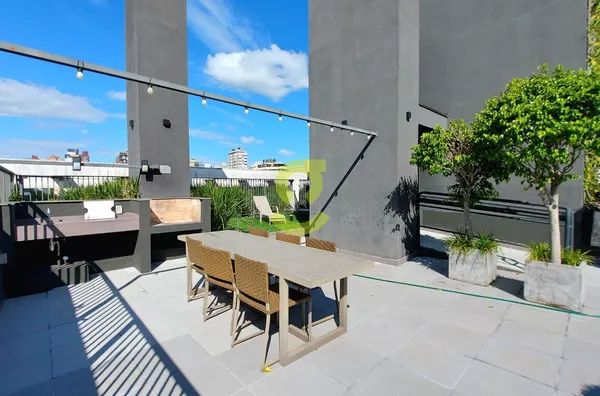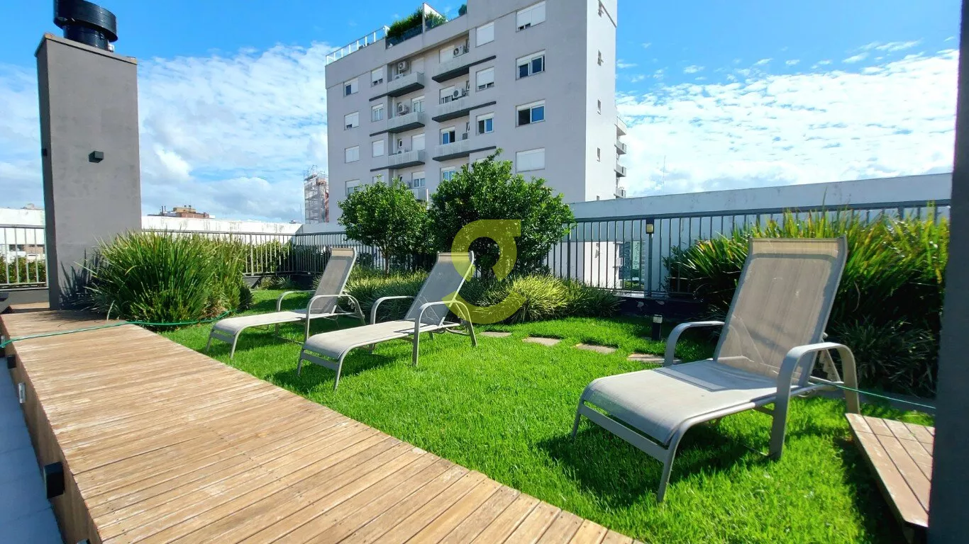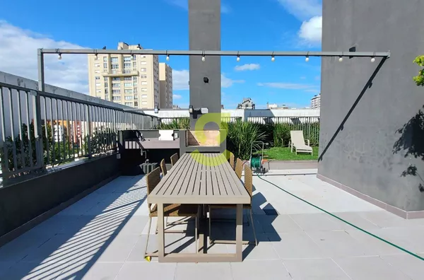 🎯 ROOFTOP DE TIRAR O FÔLEGO! 😍 Com duas parrillas, área de convivência, cadeiras e esteiras para banho de sol. Ah, e aquela vista absurda da cidade pra fechar com chave de ouro.
