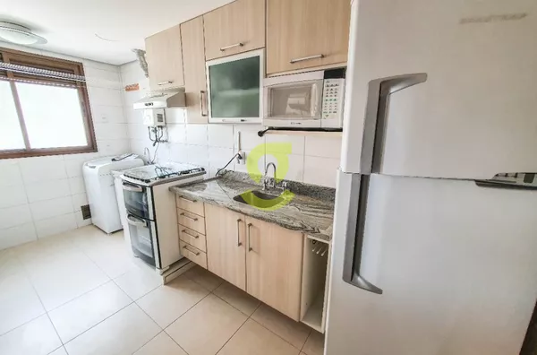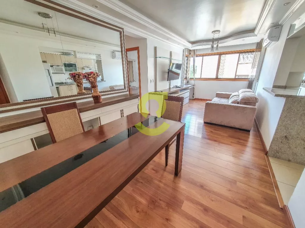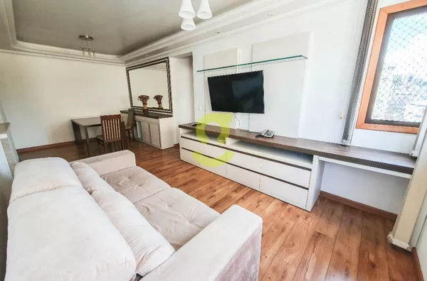 Excelente apto MOBILIADO, piso laminado, living dois ambientes, c/ ar condicionado, cozinha montada c/ churrasqueira, área de serviço com junker e maquina de lavar, dois dormitórios com ar condicionados, armários e camas, sendo uma suíte. Duas vagas de garagem cobertas. Condomínio com portaria 24hs, playground, academia, 2 elevadores e salão de festa. Próximo ao shopping Bourbon Ipiranga.