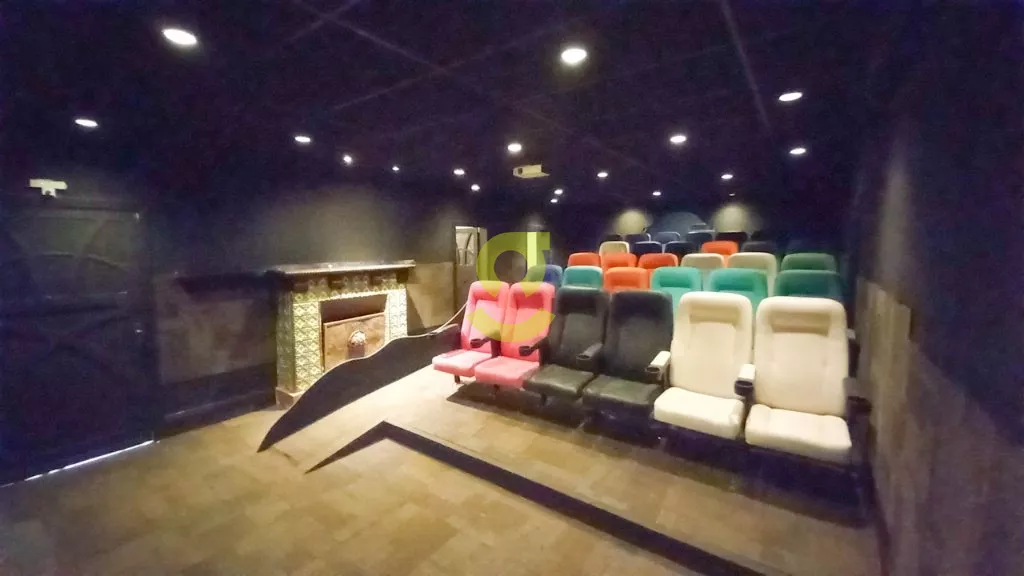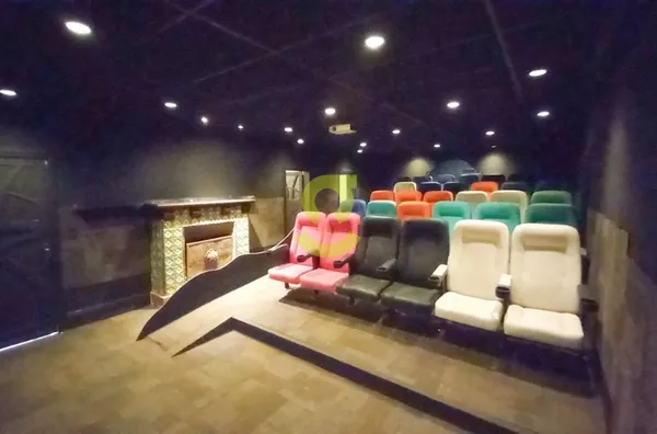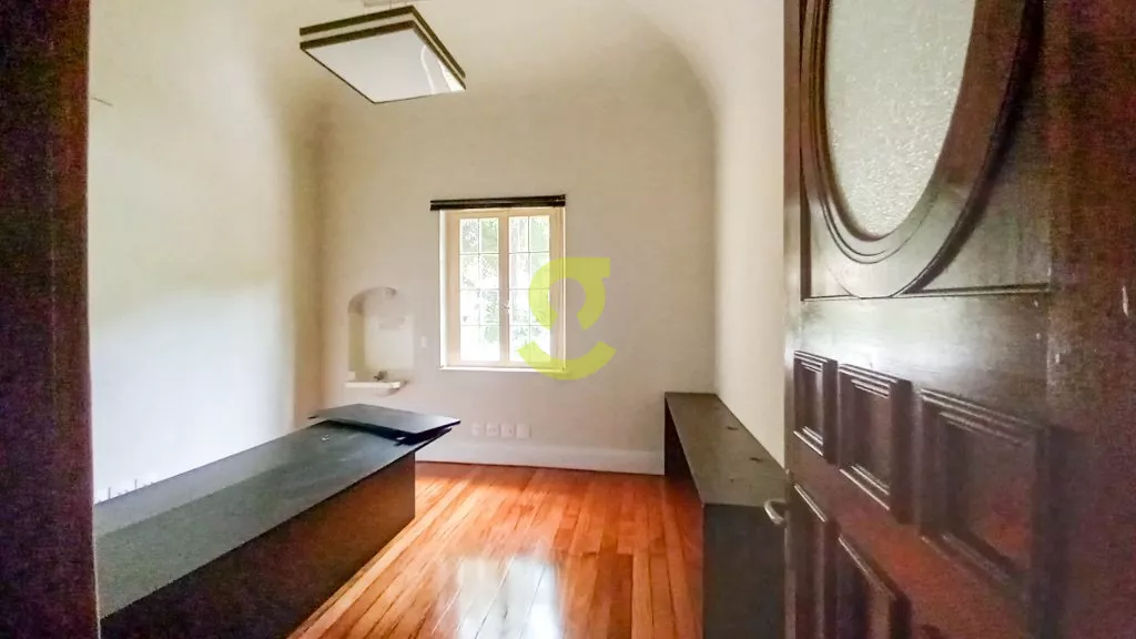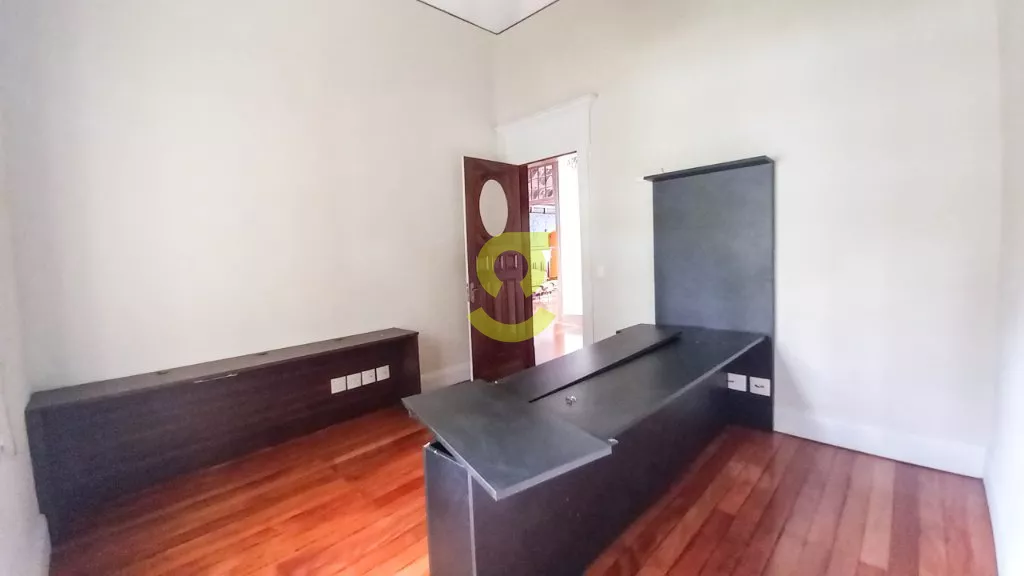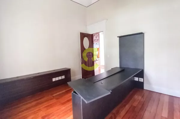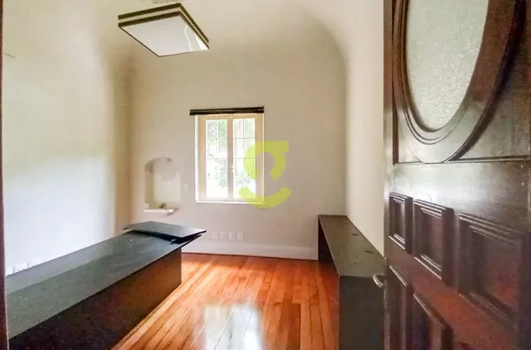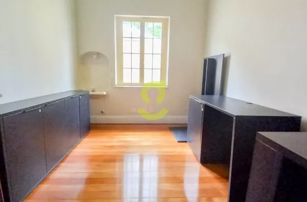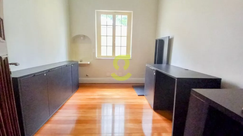 No andar de baixo também encontramos um corredor passando uma porta de vidro, que leva para outros dois cômodos, um deles podendo ser deposito, fichários, ou estoque, ao fundo outro cômodo amplo com janelas, e uma porta que leva para outro ambiente, sendo armários e maquinários de funcionamento para sala de cinema, ao lado temos outro cômodo, e uma porta nele que leva para um pequeno corredor onde se encontram extintores de incêndio, um grande banheiro de uso coletivo, com 3 pias e duas divisórias para vasos, e uma porta que dá acesso à sala de cinema também, que é o toque especial desta bela casa, uma incrível sala de cinema, com 30 acentos confortáveis, acentos projetados e nivelados para todos terem campo de visão para tela, na sala de cinema uma bela lareira com azulejos do império espanhol, original, e uma sala ao lado, onde era um escritório, com paredes em madeira nobre, clássico, com belos lustres e um charme único.