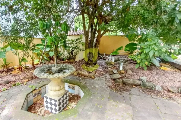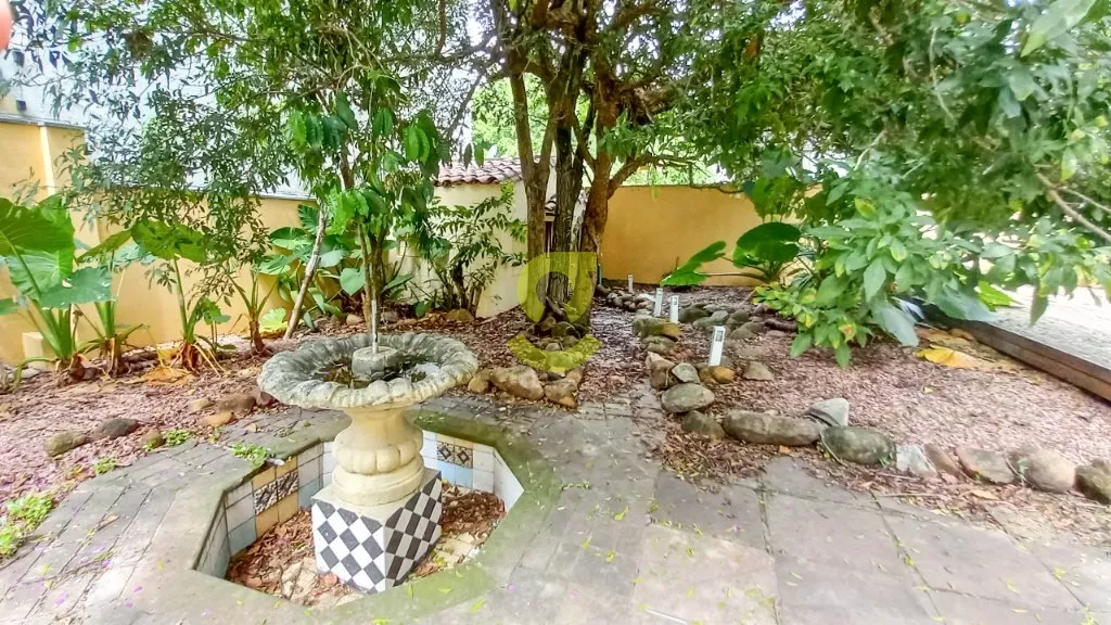No pátio externo temos uma entrada ampla, espaçosa, entrada para carros a esquerda, banco de pedra. Arvores floridas, dois decks de madeira a direita separados por pilares e colunas de pedra no meio, acesso para cadeirantes, todo estruturado com iluminação, um belo chafariz, banheiro no pátio externo com 4 vasos 2 pias, ao fundos banheiros para cadeirantes, e uma sala externa de múltiplo uso, com vidros e janelas amplos dando claridade e iluminação ao ambiente.