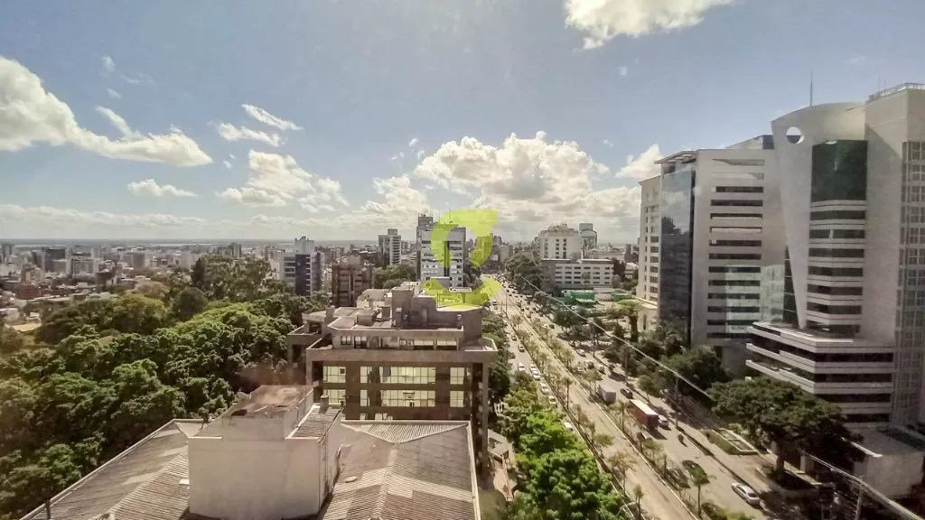 Grande e imponente conjunto comercial em uma das localizações da maior prestígio de Porto Alegre. Conjunto comercial de 380m², andar todo, com vista panorâmica das janelas de ponta a ponta, carpete no piso, 4 banheiros e com 9 vagas de garagem.