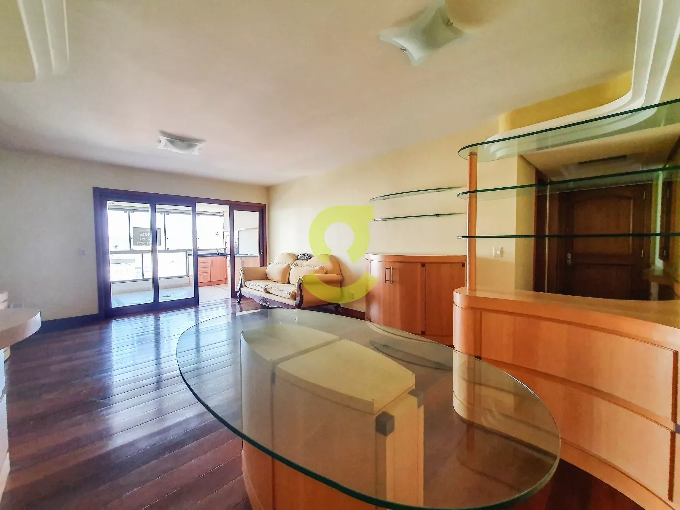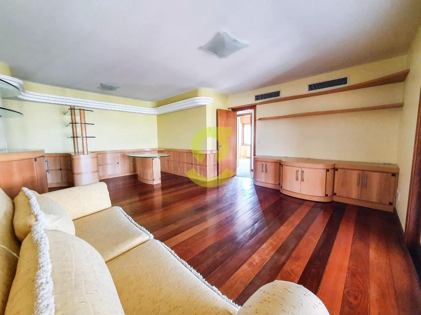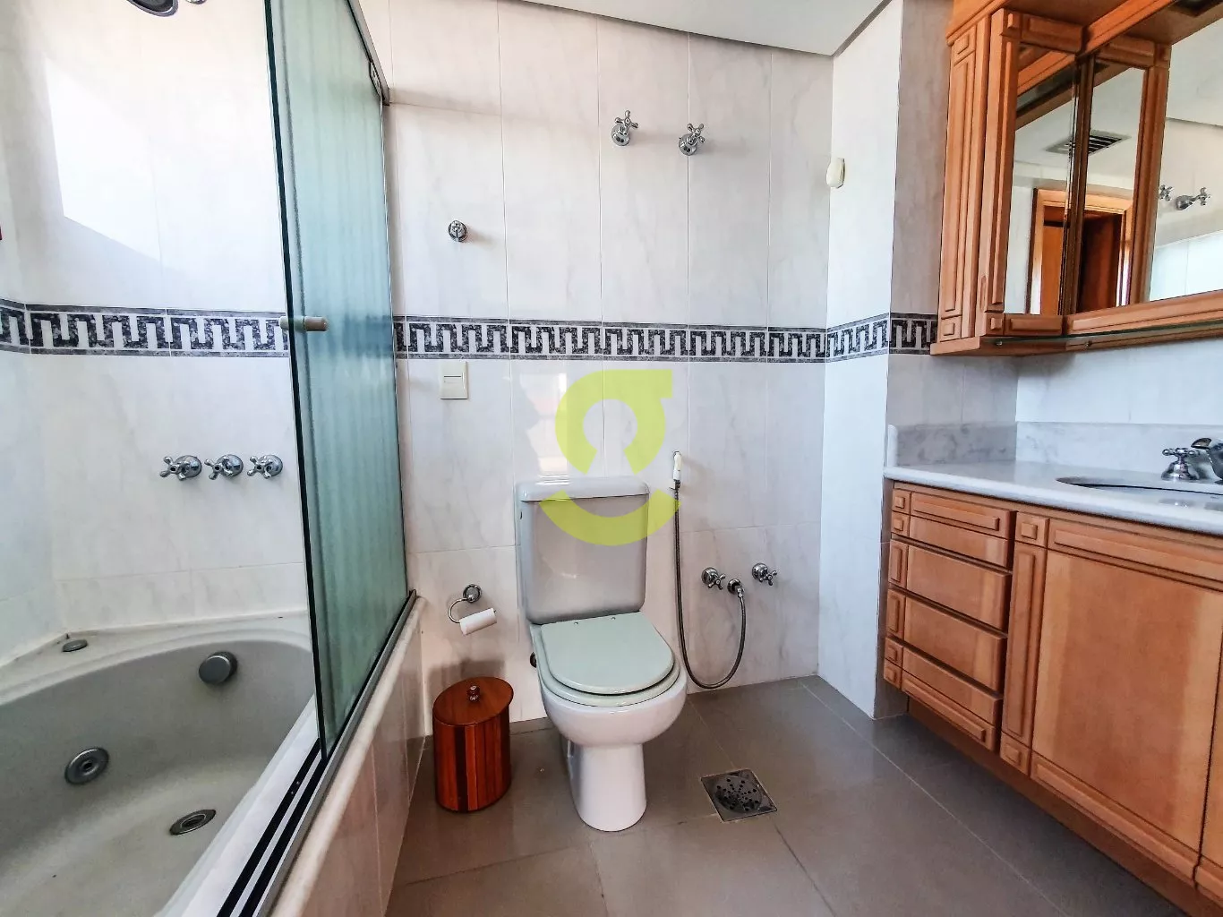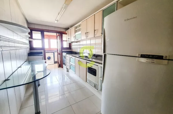 Belo apartamento de 169m² privativos, amplo living de 3 ambientes, sala de estar e sala de jantar com móveis, ampla sacada integrada com churrasqueira e uma vista incrível, andar alto, cozinha mobiliada, área de serviço separada equipada, dependência de empregada com WC, 3 dormitórios, com móveis fixos, sendo uma suíte master com hidromassagem, sacada e cofre de segurança, 3 banheiros e ar-condicionado central no apartamento.