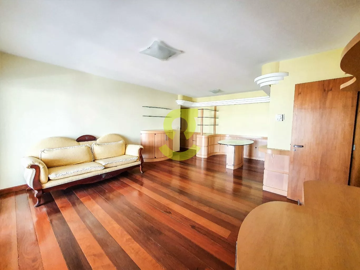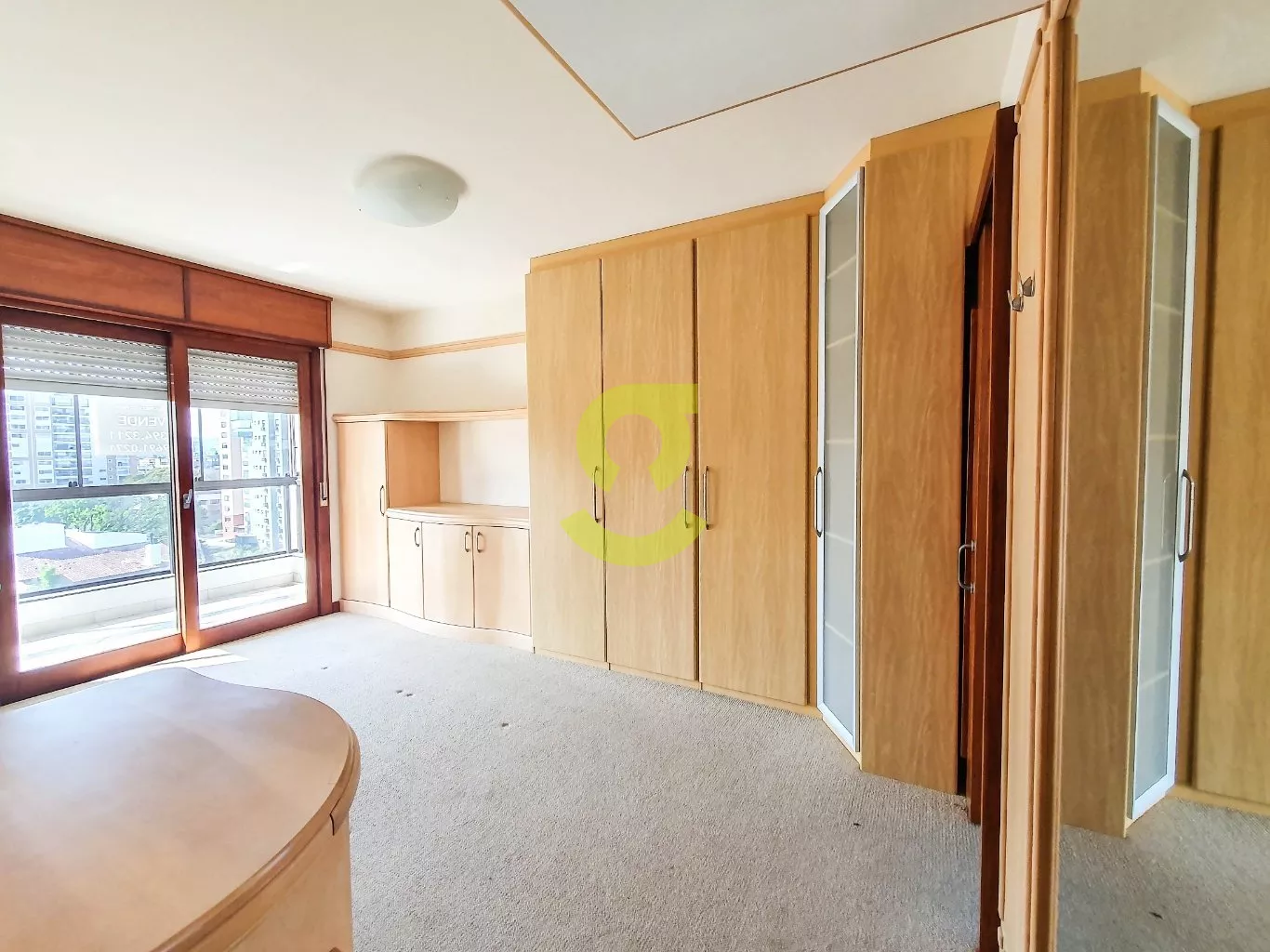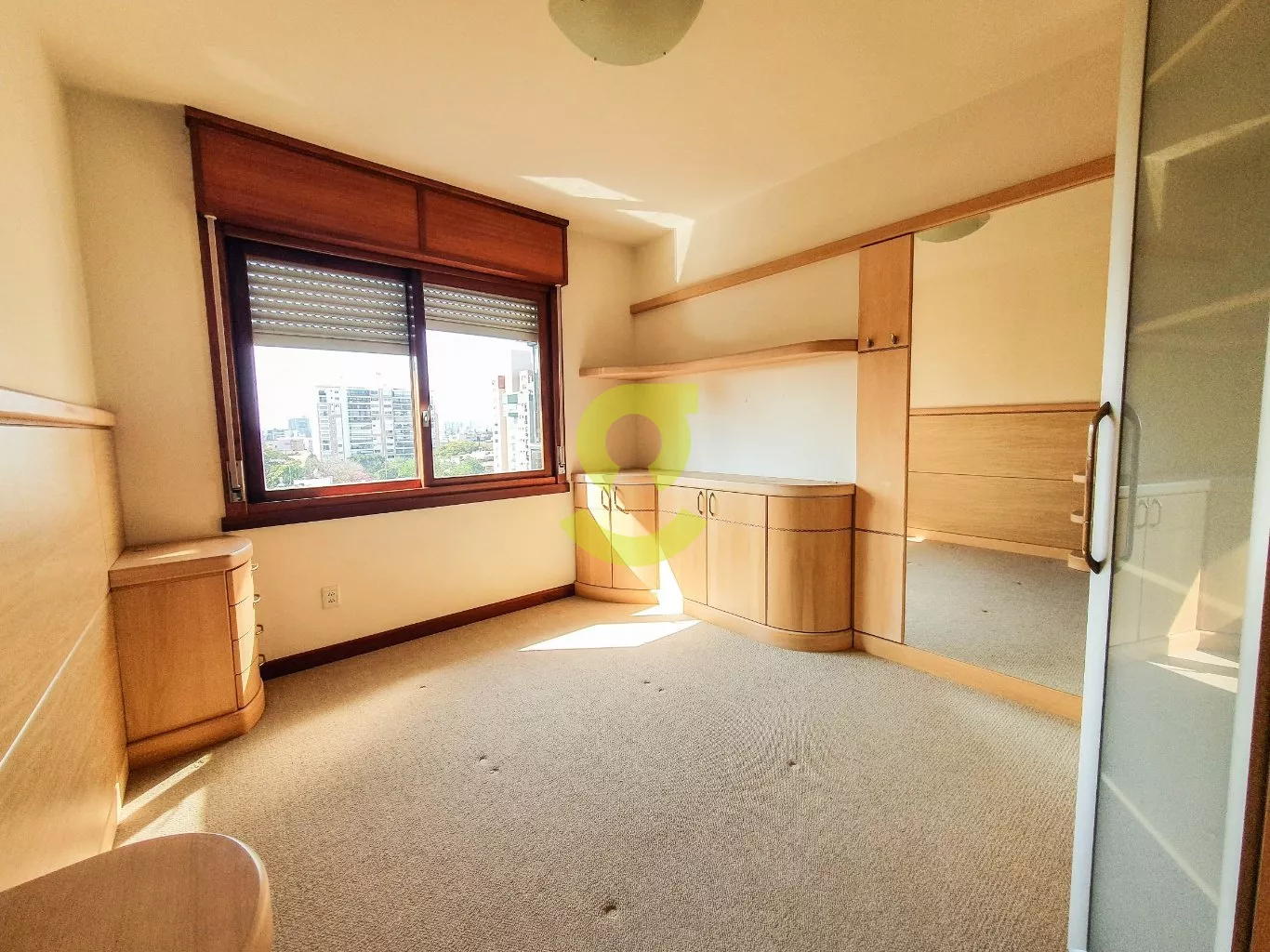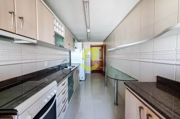 Belo apartamento de 169m² privativos, amplo living de 3 ambientes, sala de estar e sala de jantar com móveis, ampla sacada integrada com churrasqueira e uma vista incrível, andar alto, cozinha mobiliada, área de serviço separada equipada, dependência de empregada com WC, 3 dormitórios, com móveis fixos, sendo uma suíte master com hidromassagem, sacada e cofre de segurança, 3 banheiros e ar-condicionado central no apartamento.