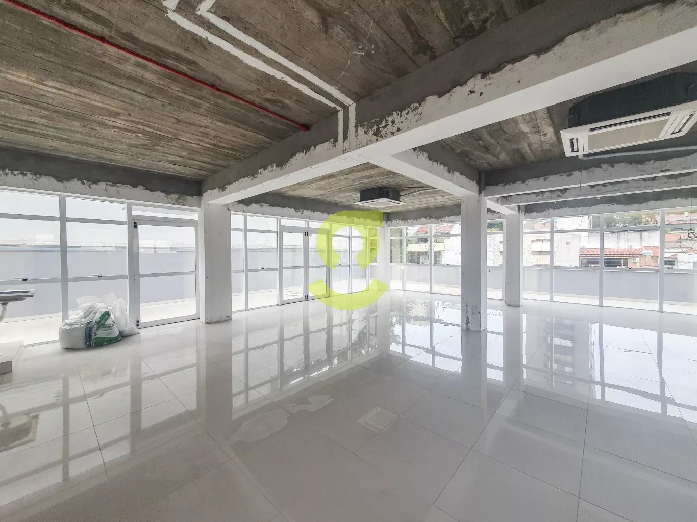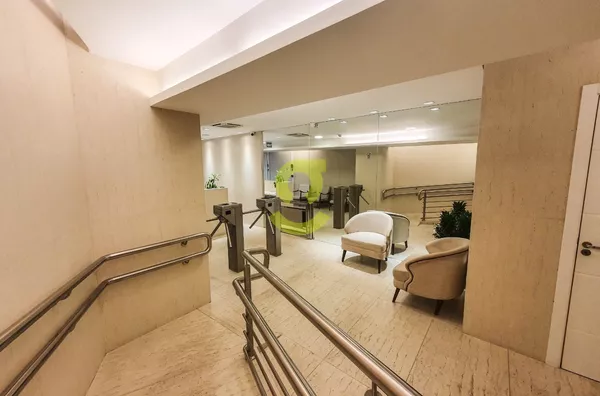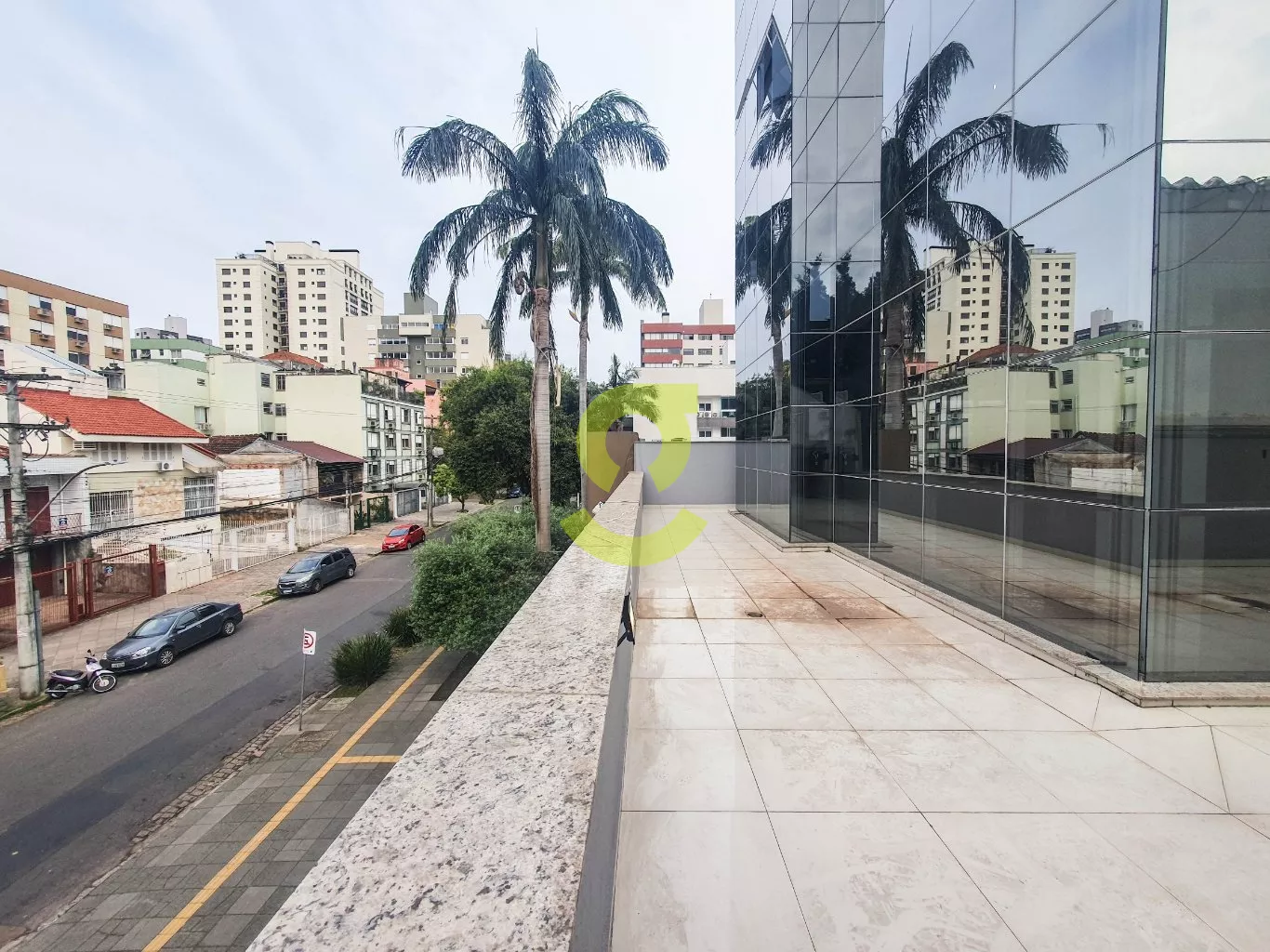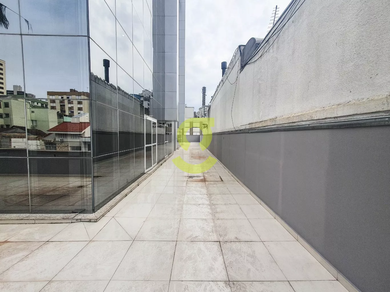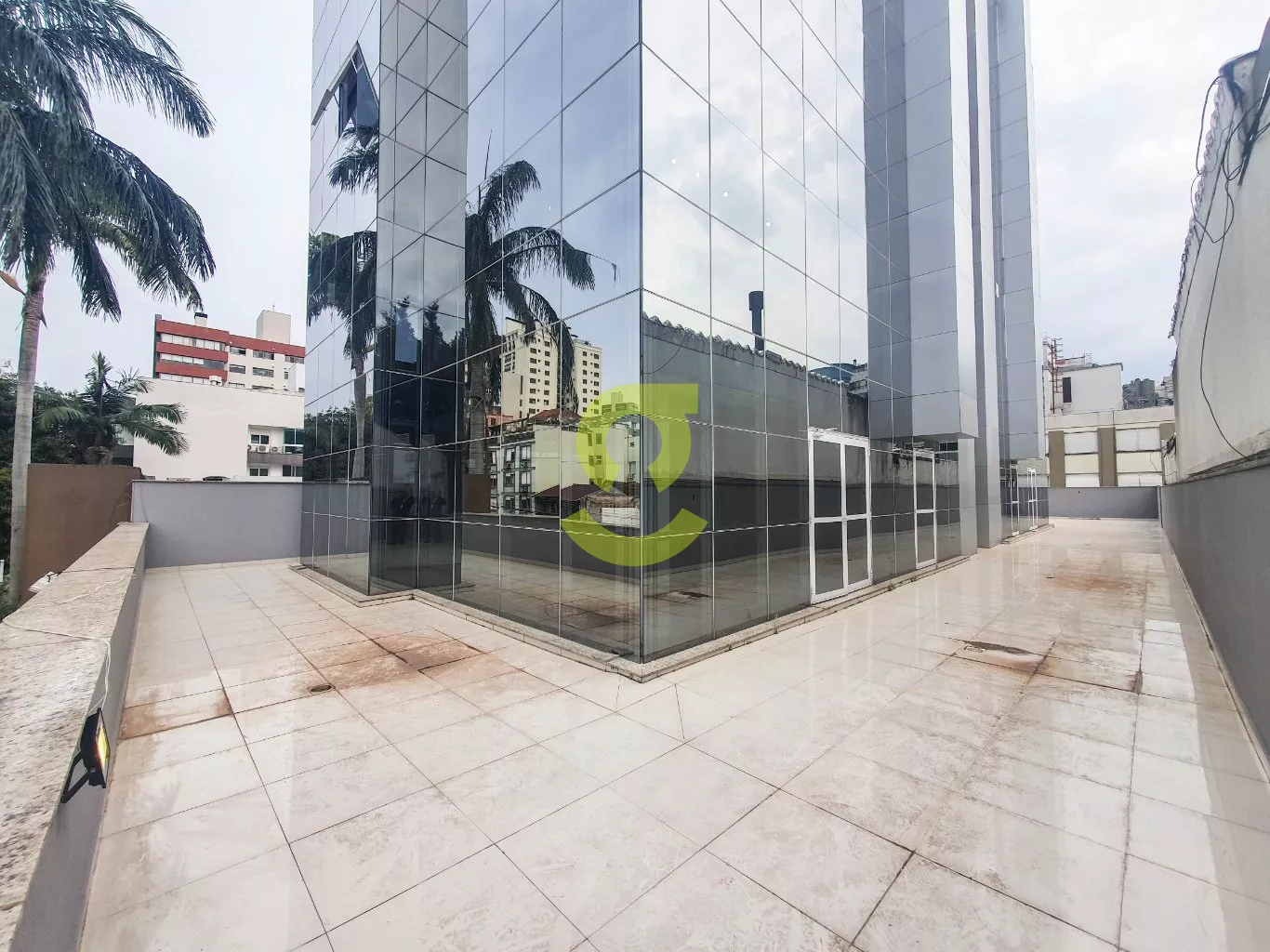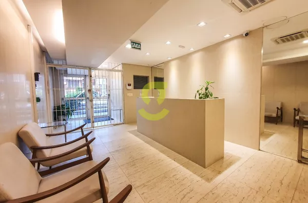 Sala comercial de 100m², com 02 banheiros, ar-condicionado, piso porcelanato, 2 vagas de garagem e ainda conta com um belo e amplo terraço.