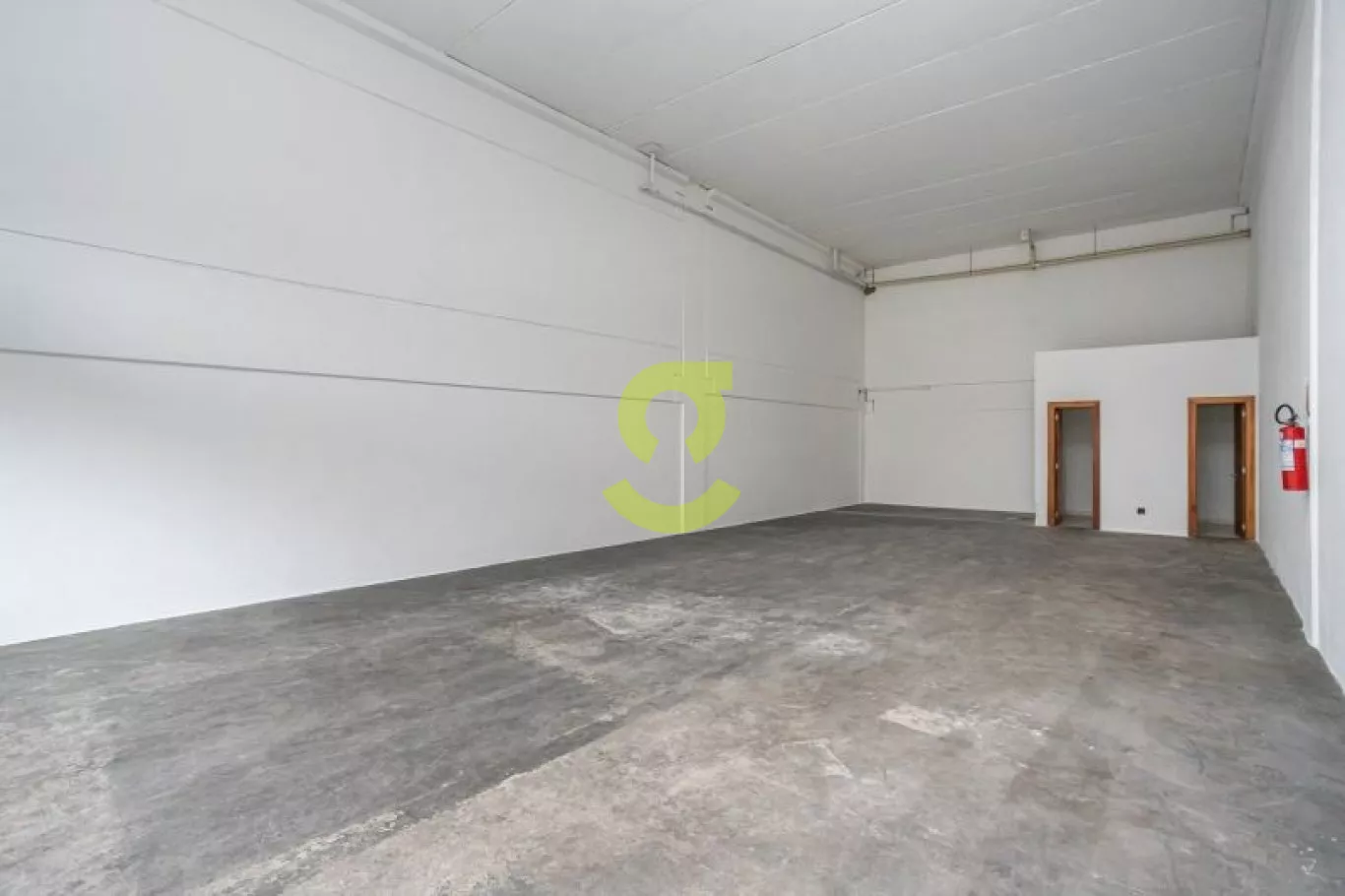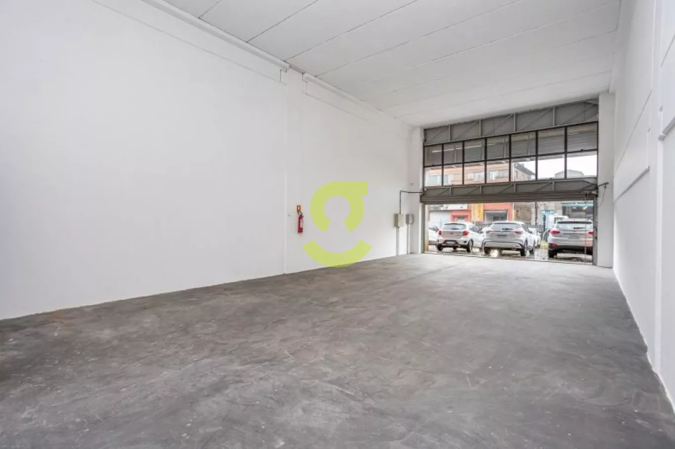 Depósito/Escritório de 125m2, piso cerâmico, pé direito simples, cortina metálica com