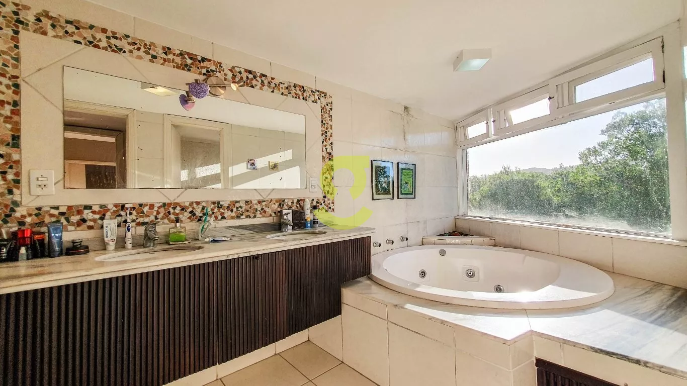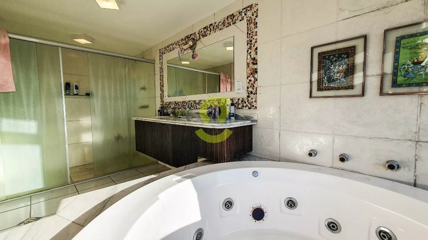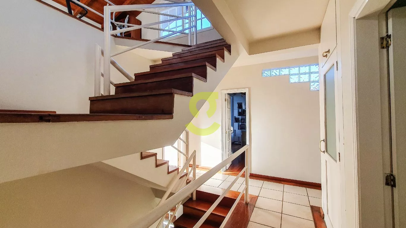 No segundo piso temos 3 quartos, todos com ar-condicionado, banheiro social com divisória, mezanino com escritório e ar-condicionado, incrível suíte master, com TV, lustres na cabeceira da cama, sacada, closet e banheiro com hidromassagem e vista panorâmica.