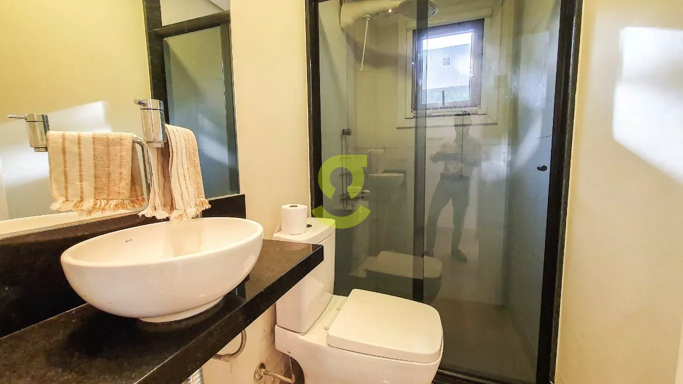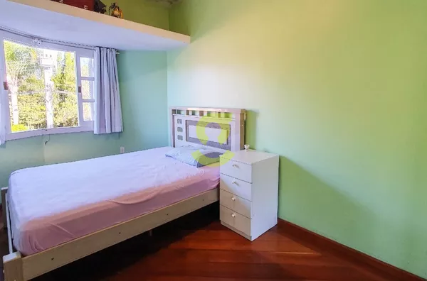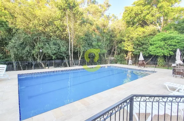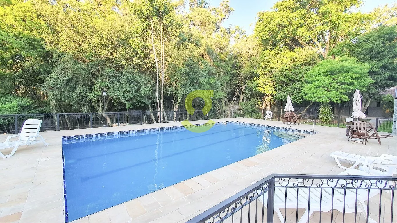 Condomínio de casas com portaria 24h, churrasqueira ao ar livre, trilha ecológica, quadra poli esportiva, cancha de bocha e piscina.