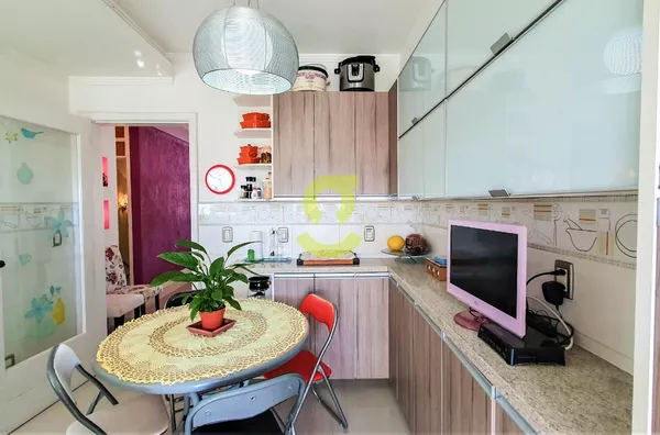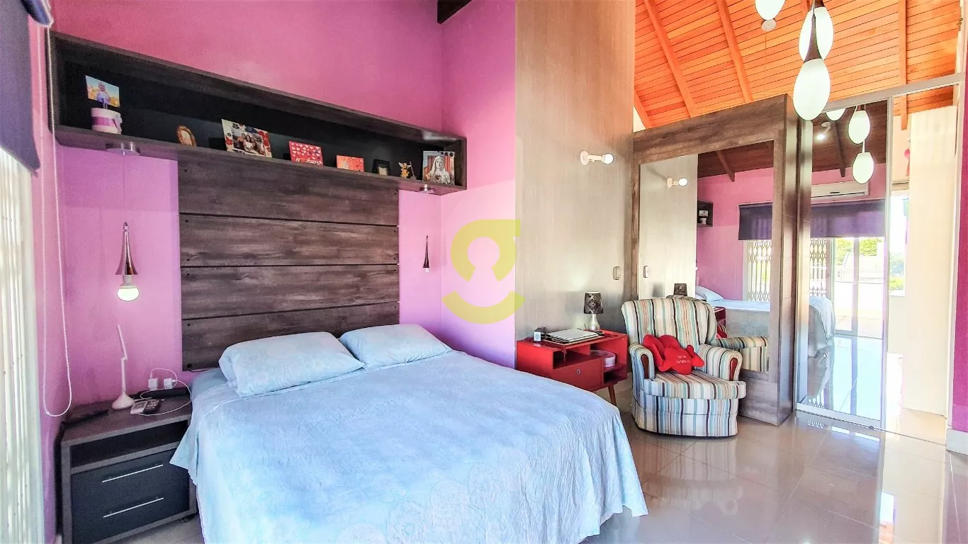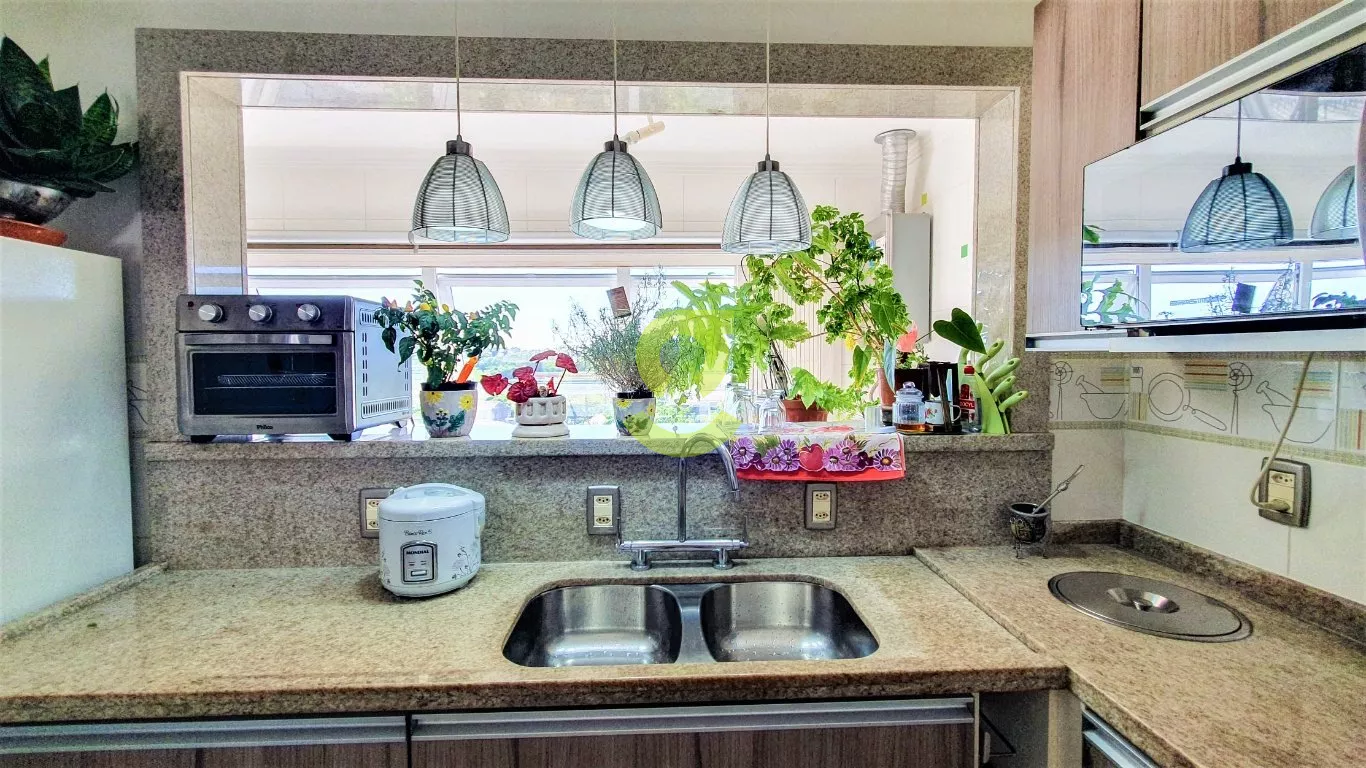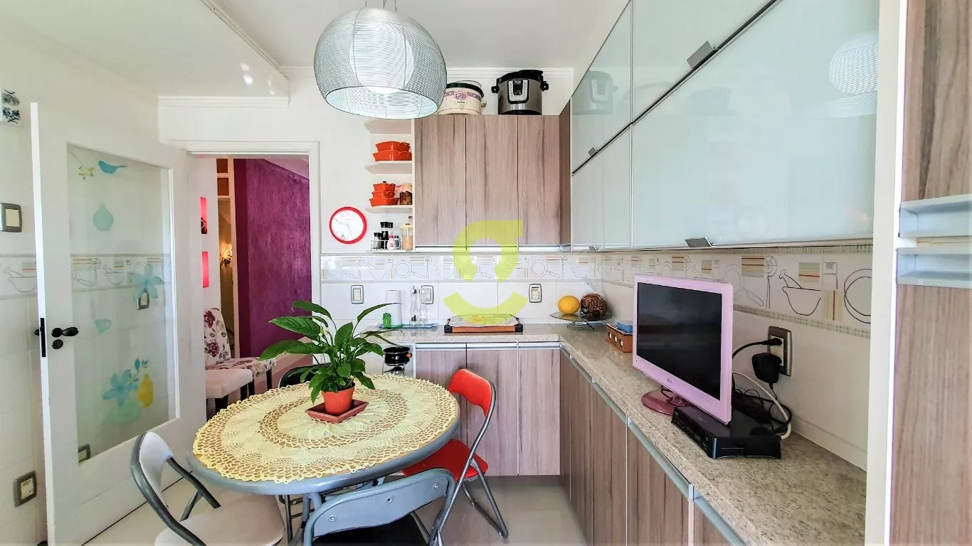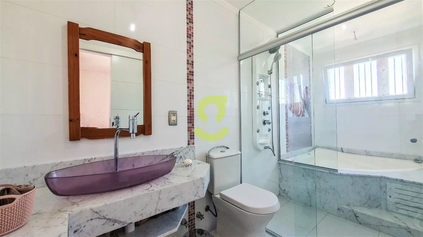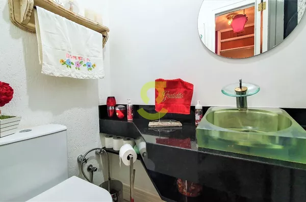 No segundo pavimento temos um lavabo, cozinha com móveis planejados, área de serviço separada com aquecimento de passagem, sala de jantar com um lindo lustre sobre a mesa, sala de estar com lustres, lareira elétrica e sacada, e todo piso porcelanato.