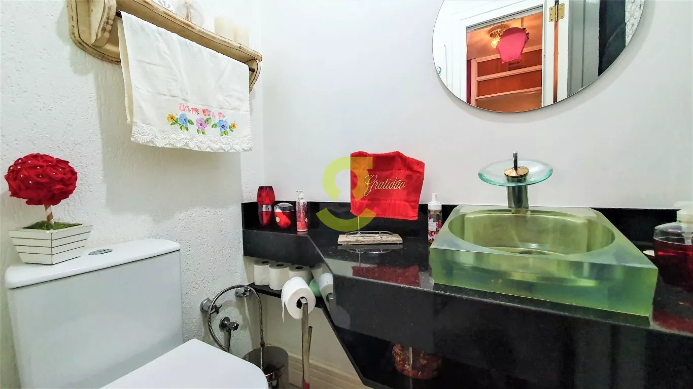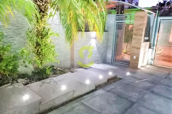 Linda casa com 396m² pronta para morar, são 4 andares, sendo no primeiro andar entrada e pátio, com iluminação completa, jardim, e vaga para até 4 carros descobertos, seguindo para garagem coberta para até 3 carros, na garagem ainda com cozinha americana, mesa embutida de madeira na parede, pátio aos fundos com churrasqueira e lavabo.