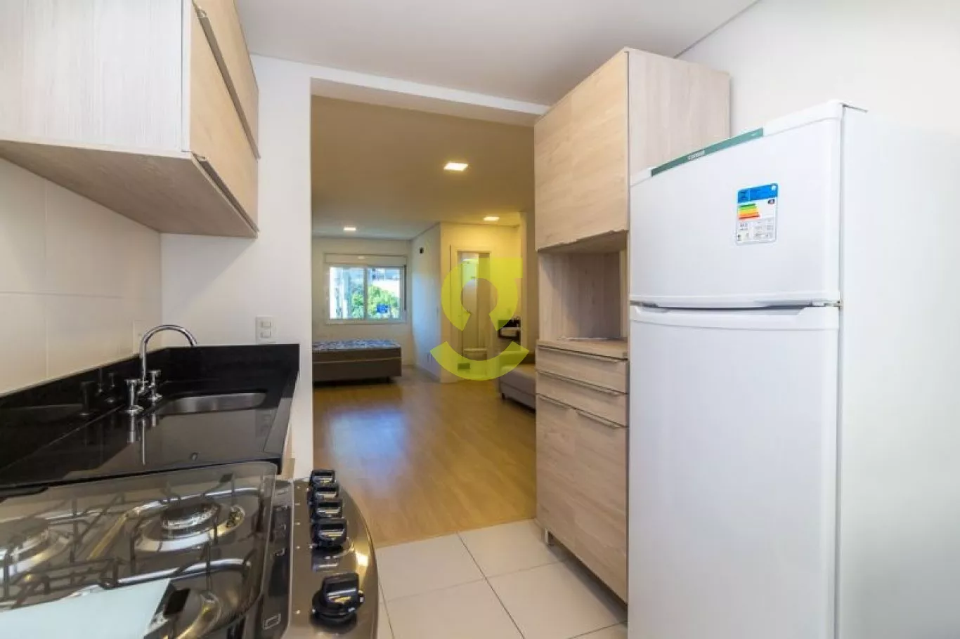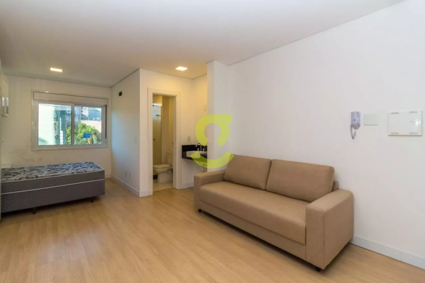 Apartamento mobiliado, com piso laminado, forro de gesso com luminárias, banheiro, ventilação direta em todos os cômodos, cozinha e área de serviço integradas, duas esperas para Split, aquecedor a gás. Localizado junto ao Viaduto Imperatriz Leopoldina, ao lado do Campus Central da UFRGS, em frente a Av. Loureiro da Silva.