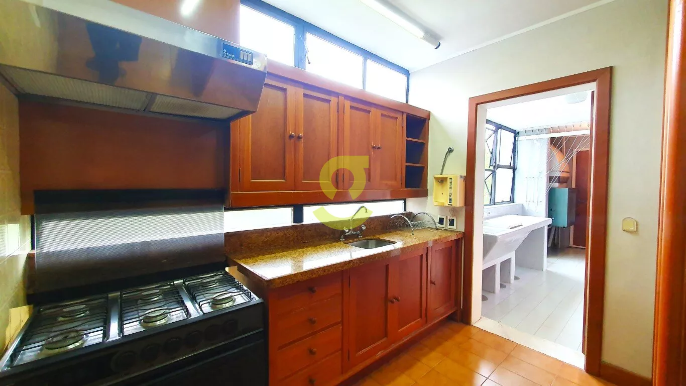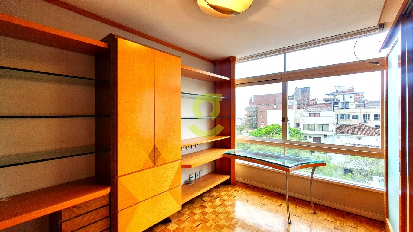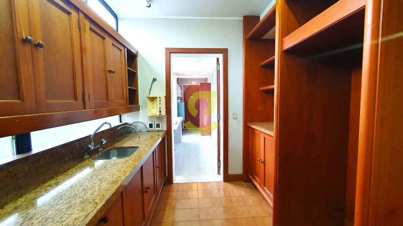 Amplo apartamento com 195m², ampla cozinha com móveis fixos, área de serviço separada, dependência de empregada com banheiro. Uma linda e ampla sala, com um segundo ambiente formando um escritório, banheiro social, 3 dormitórios sendo uma suíte com closet integrado ao banheiro.