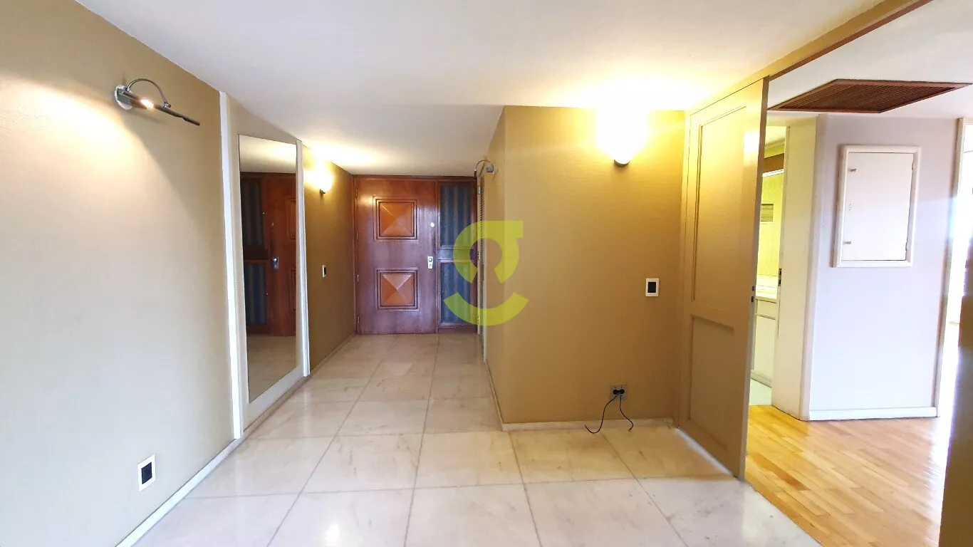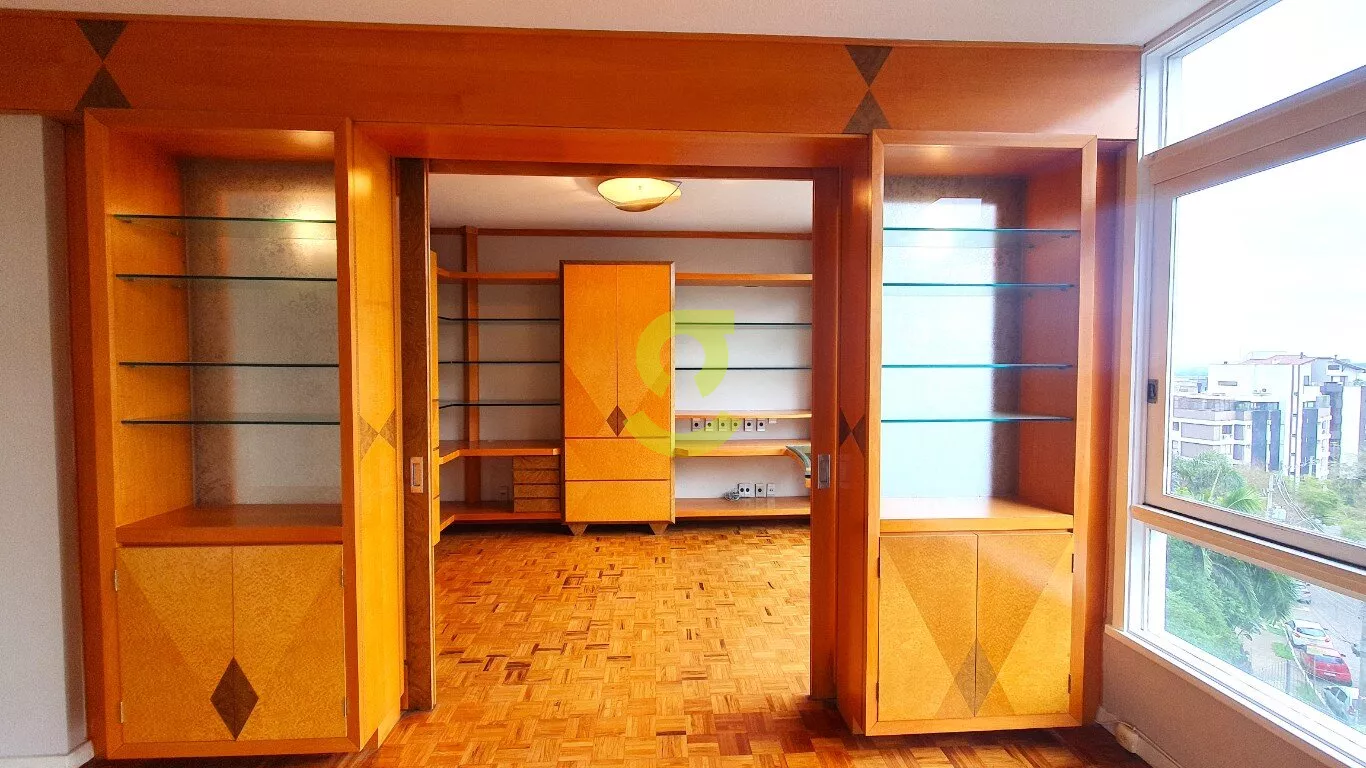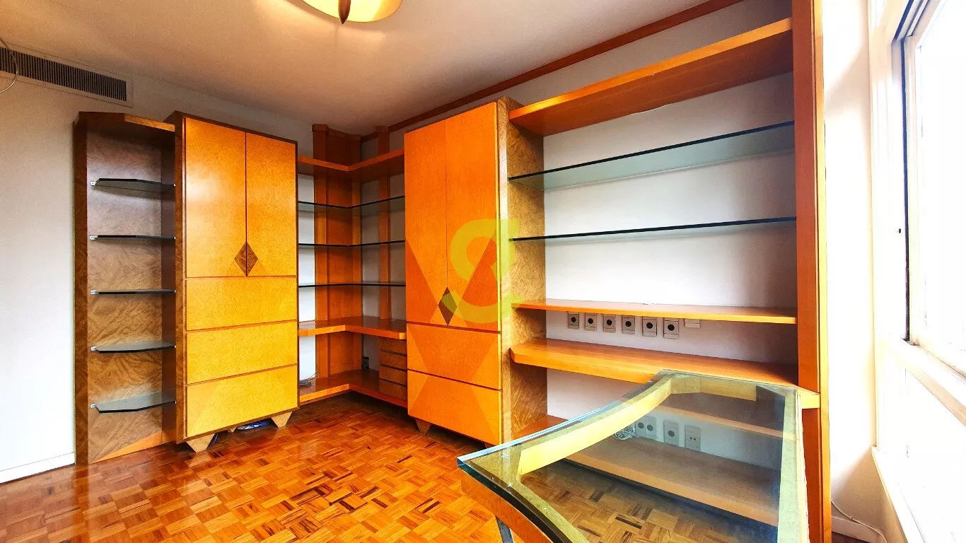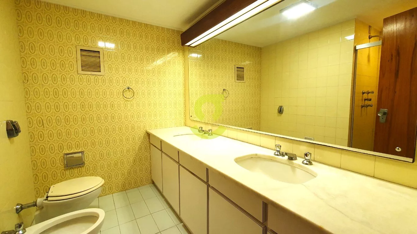 Amplo apartamento com 195m², ampla cozinha com móveis fixos, área de serviço separada, dependência de empregada com banheiro. Uma linda e ampla sala, com um segundo ambiente formando um escritório, banheiro social, 3 dormitórios sendo uma suíte com closet integrado ao banheiro.