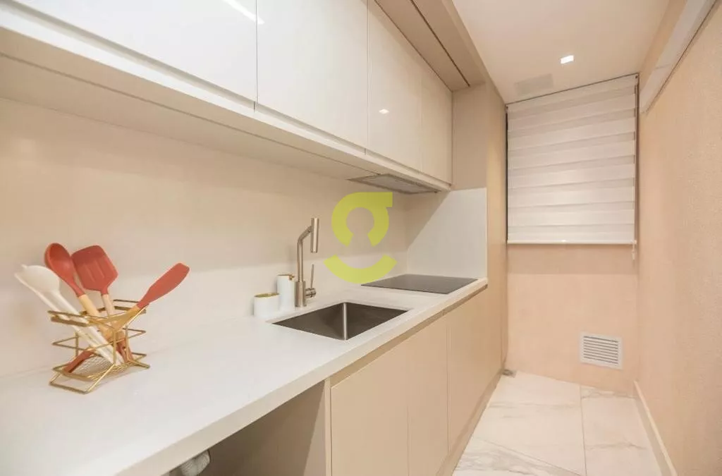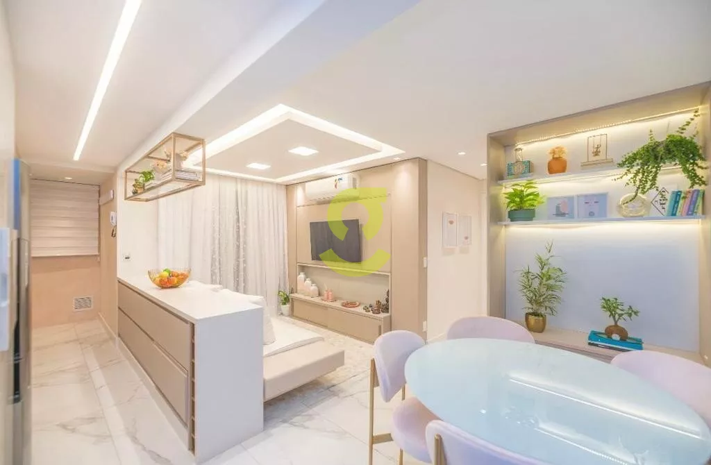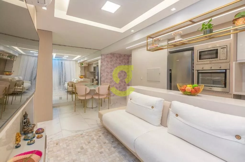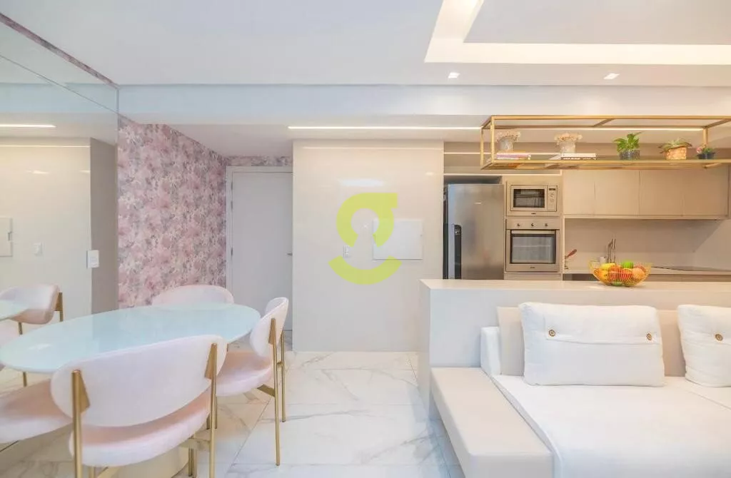 Ótimo apartamento MOBILIADO e DECORADO por arquiteto no condominio FWD, planta de 2 dormitório transformado em 1 dormitório grande, andar alto, 58m privativos, living dois ambientes, cozinha americana, banheiro social e duas vagas de garagem. Condomínio com infraestrutura completa de lazer.