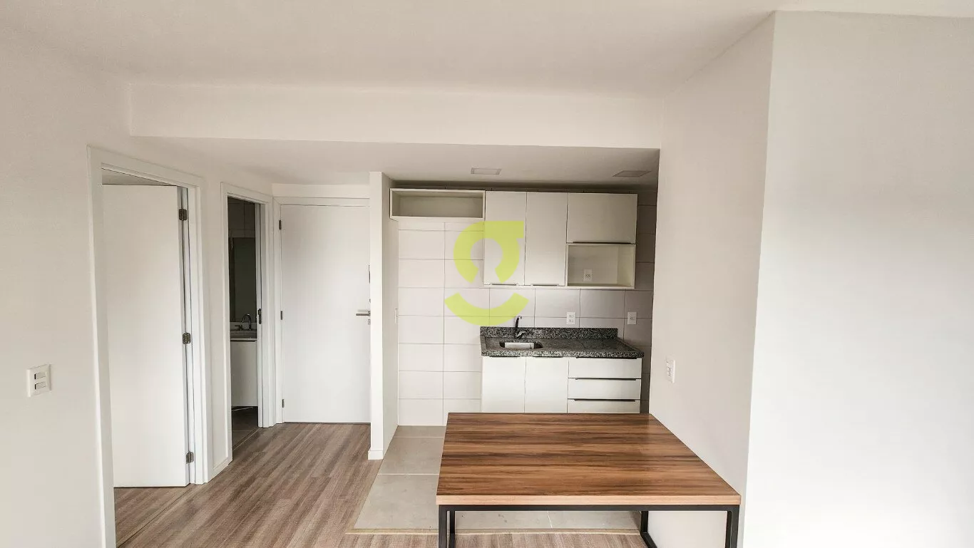 Ótimo apto NOVO, andar alto, 43m privativos, piso laminado, semi mobiliado, cozinha americana c/ churrasqueira, 1 dorm, 1 vaga.