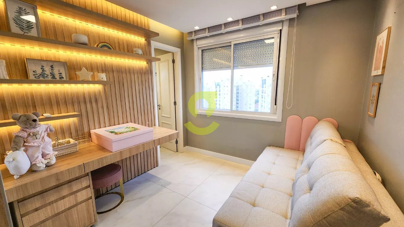 Espetacular apto 100% MOBILIADO, andar alto, vista permanente para o parque Germânia, 148m privativos, living 3 ambientes com lareira, churrasqueira, 2 ar condicionados, lavabo, ampla cozinha americana TODA equipada, área de serviço separada, despensa, 3 dormitórios montados e sendo os 3 suítes, 2 vagas cobertas e individuais. Condomínio com portaria 24hs, playground, brinquedoteca, 2 academias, piscina, sala de jogos, sala de jogos kids, 2 salões de festa e quadra poliesportiva. Localizado em frente ao parque Germânia e duas quadras do shopping Iguatemi.