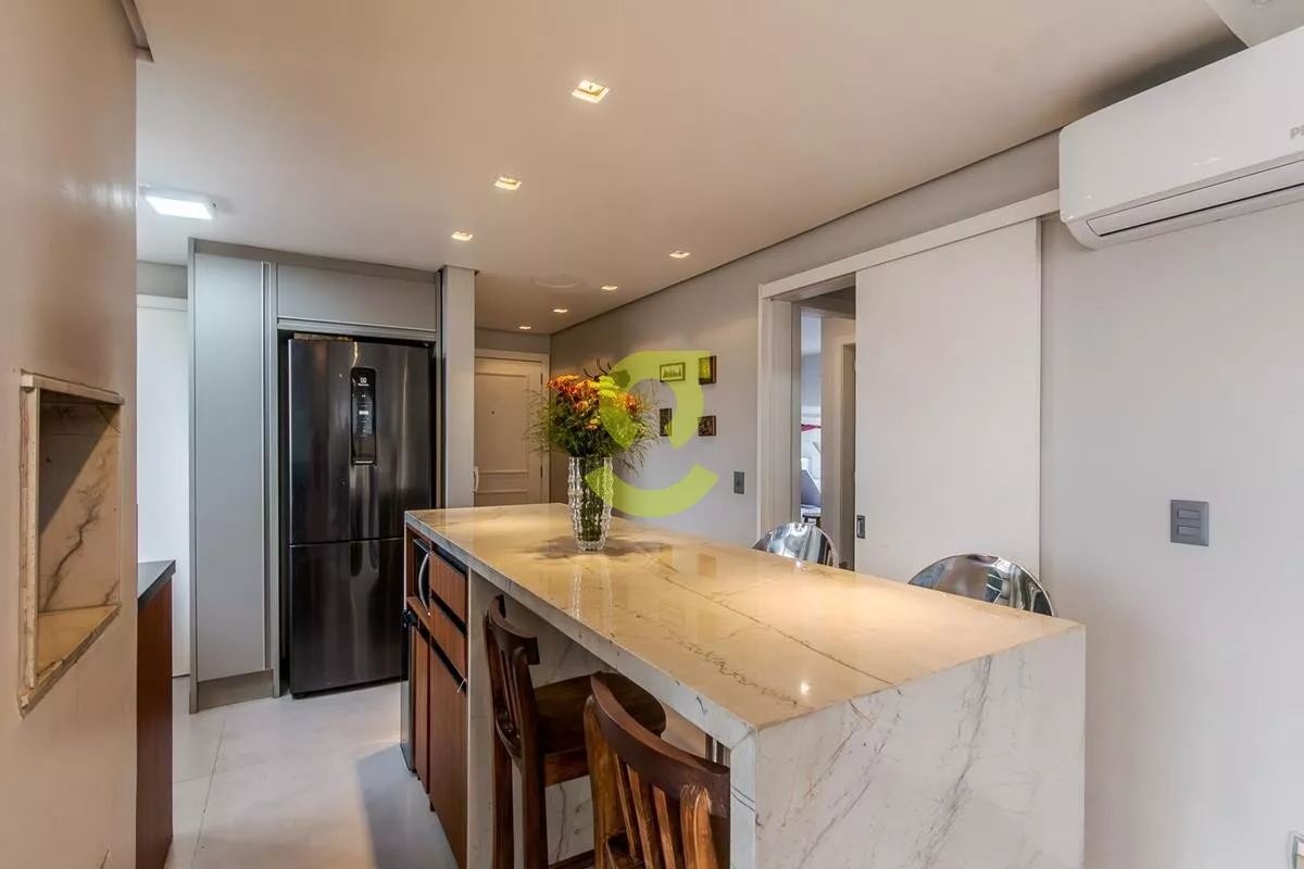 ✔ Cozinha americana integrada ao living, com bancada funcional e churrasqueira para receber amigos e familiares.