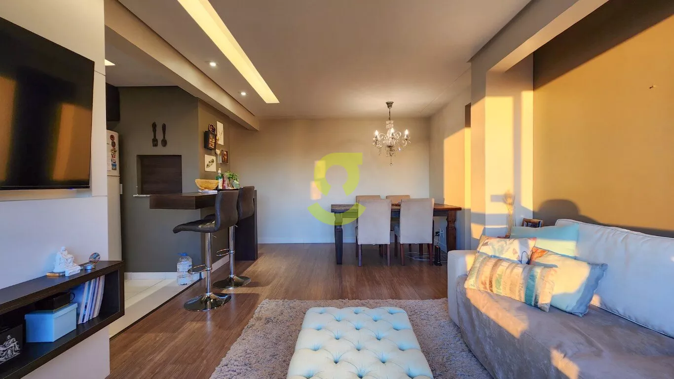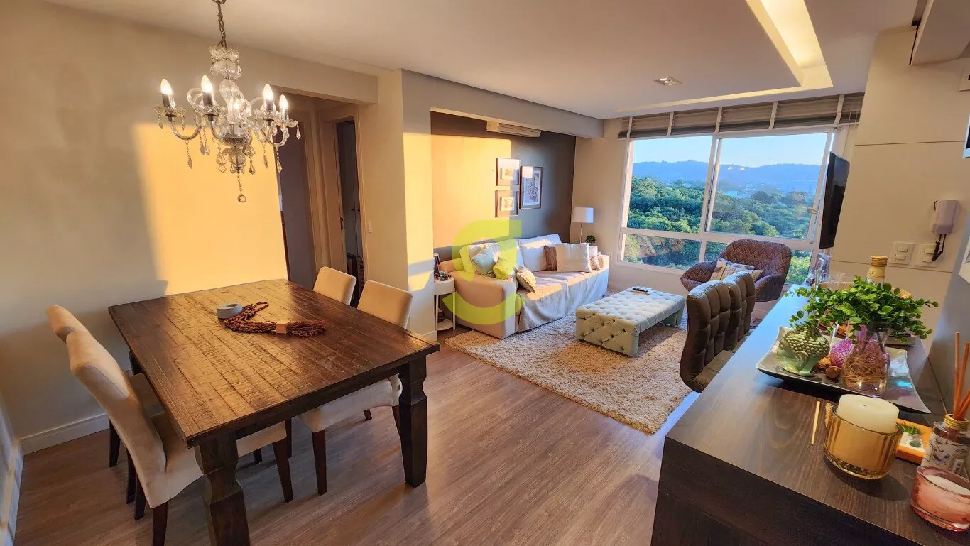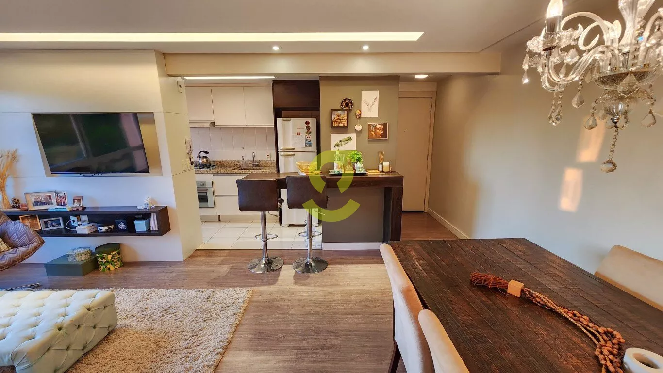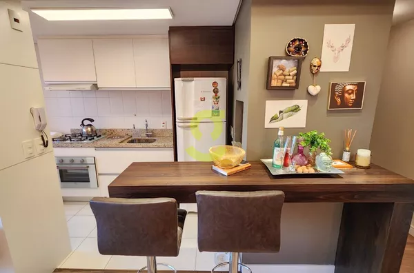 Ótimo apartamento MOBILIADO, 70m privativos, vista espetacular, living dois ambientes, cozinha americana com churrasqueira, 2 dormitórios sendo uma suite e vaga de garagem coberta! Condominio com infraestrutura completa de lazer, com portaria 24hs, 2 playground, salão de festa infantil, salão de festa adulto, sala de jogos, academia, piscina adulto e infantil, brinquedoteca, espaco pet, espaço zen, lan house, mercado, quadra poliesportiva, bicicletário, quiosque com churrasqueira, fogo de chão.