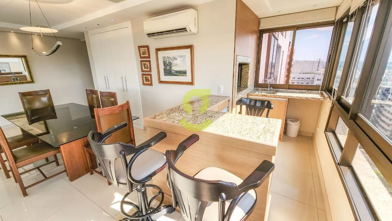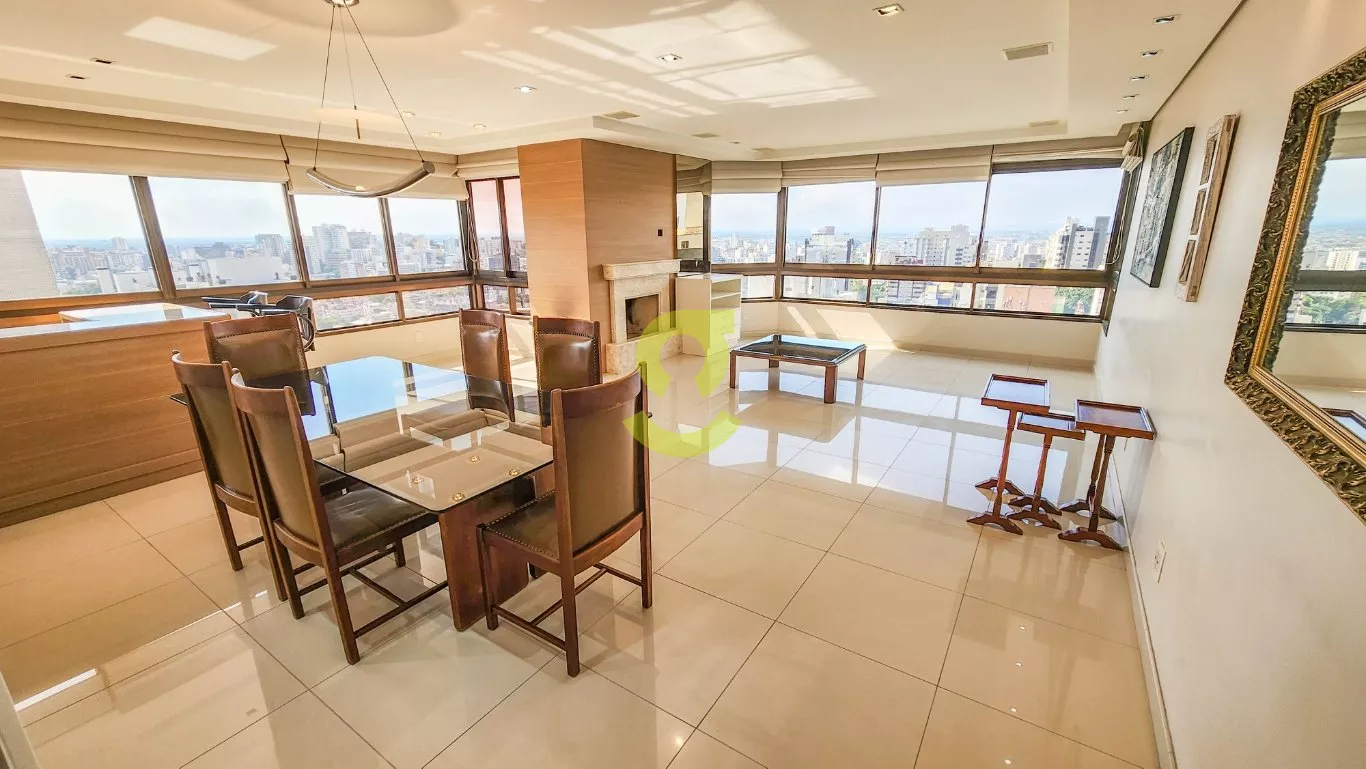 Espetacular apartamento de alto padrão, MOBILIADO, vista de cinema, 1 apartamento por andar, hall de entrada privativo, lavabo, escritório com ar condicionado, living para 4 ambientes c/ lareira, churrasqueira, ar condicionado, vista de 90°, copa e cozinha montada, área de serviço separada, banheiro auxiliar, 3 dormitórios, sendo 3 suítes, uma suíte master c/ closet e hidromassagem. Vaga para 4 carros. Condomínio com portaria 24hs, elevador codificado e salão de festa. Proximo a faculdade IPA, no ponto alto da cidade.