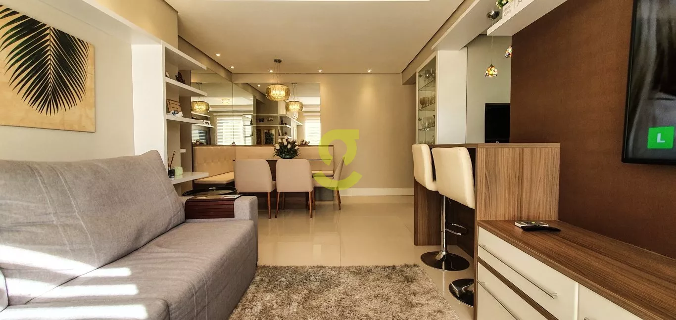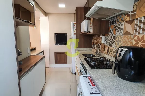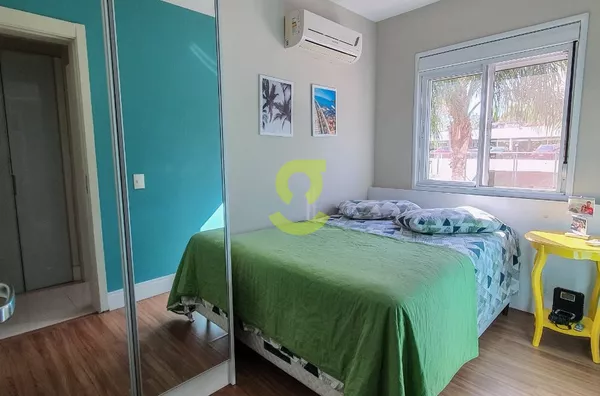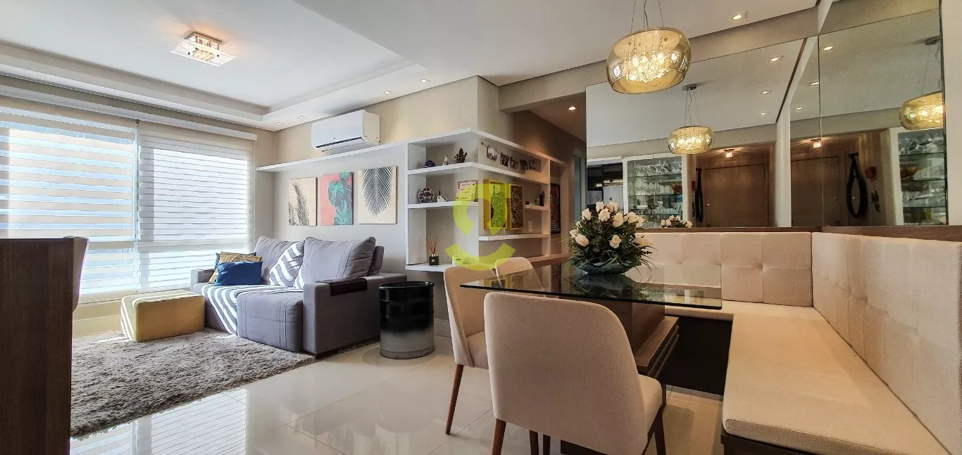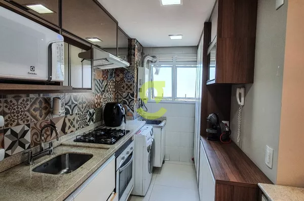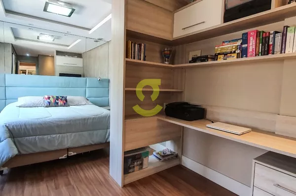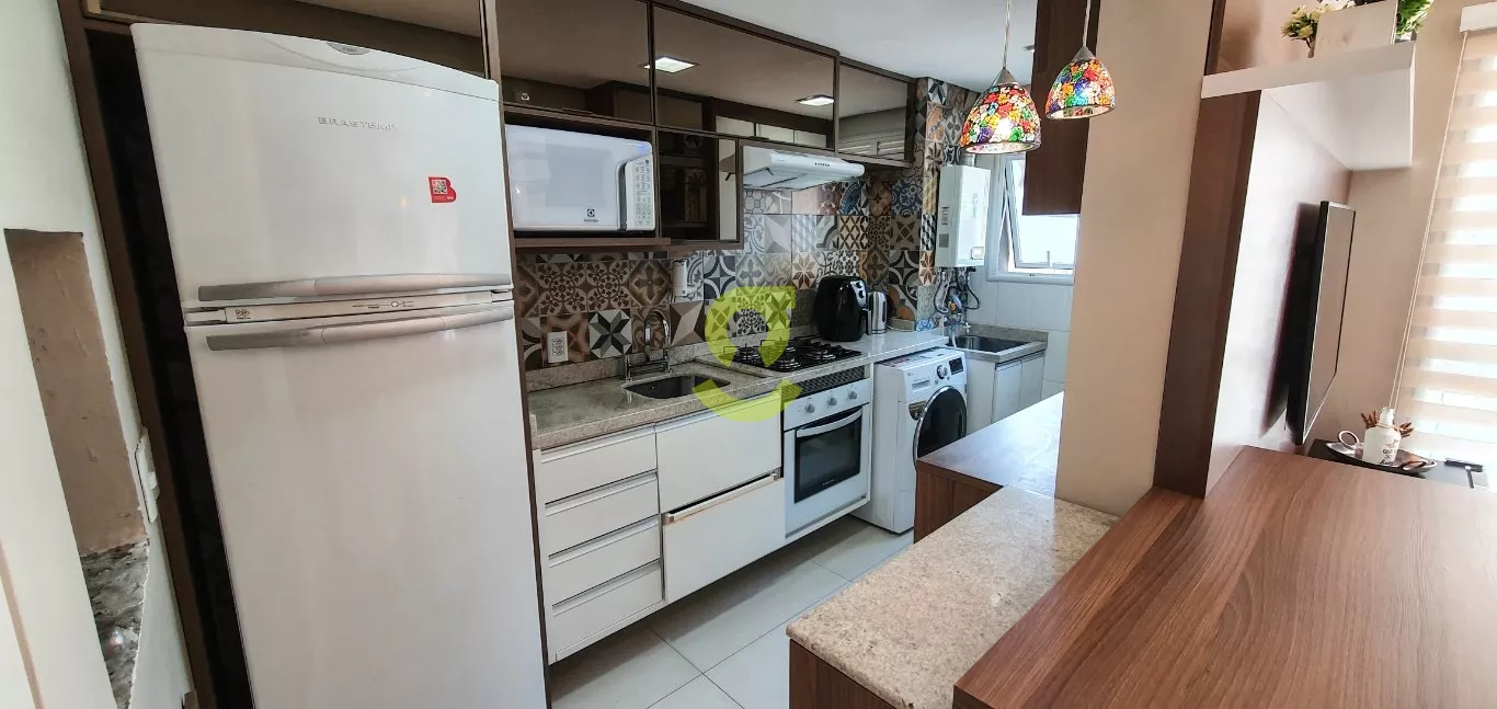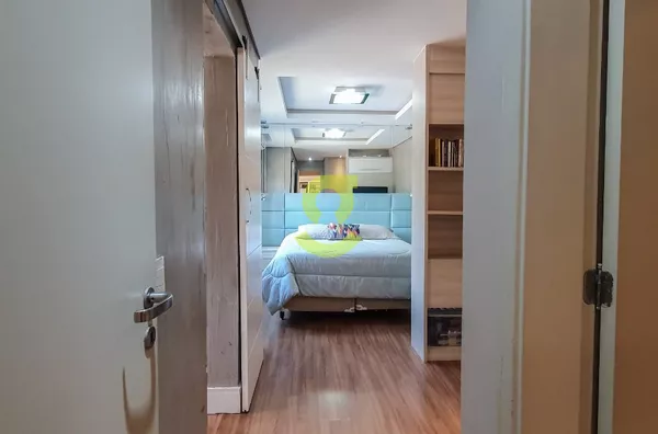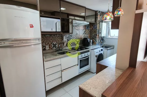 Excelente apartamento semi mobiliado, ficam todos os móveis fixos, living dois ambientes, cozinha com churrasqueira, fogão e forno elétrico, área de serviço com junker, lavabo, 1 dorm com roupeiro e ar condicionado, 1 dorm transformado em closet e 1 dormitório suite com ar condicionado. Uma vaga de garagem escriturada. Condomínio com portaria 24hs, 2 playground, salão de festa infantil, salão de festa adulto, sala de jogos, academia, piscina adulto e infantil, brinquedoteca, casa na arvore, espaço relax, lan housem, mercado quadrado.