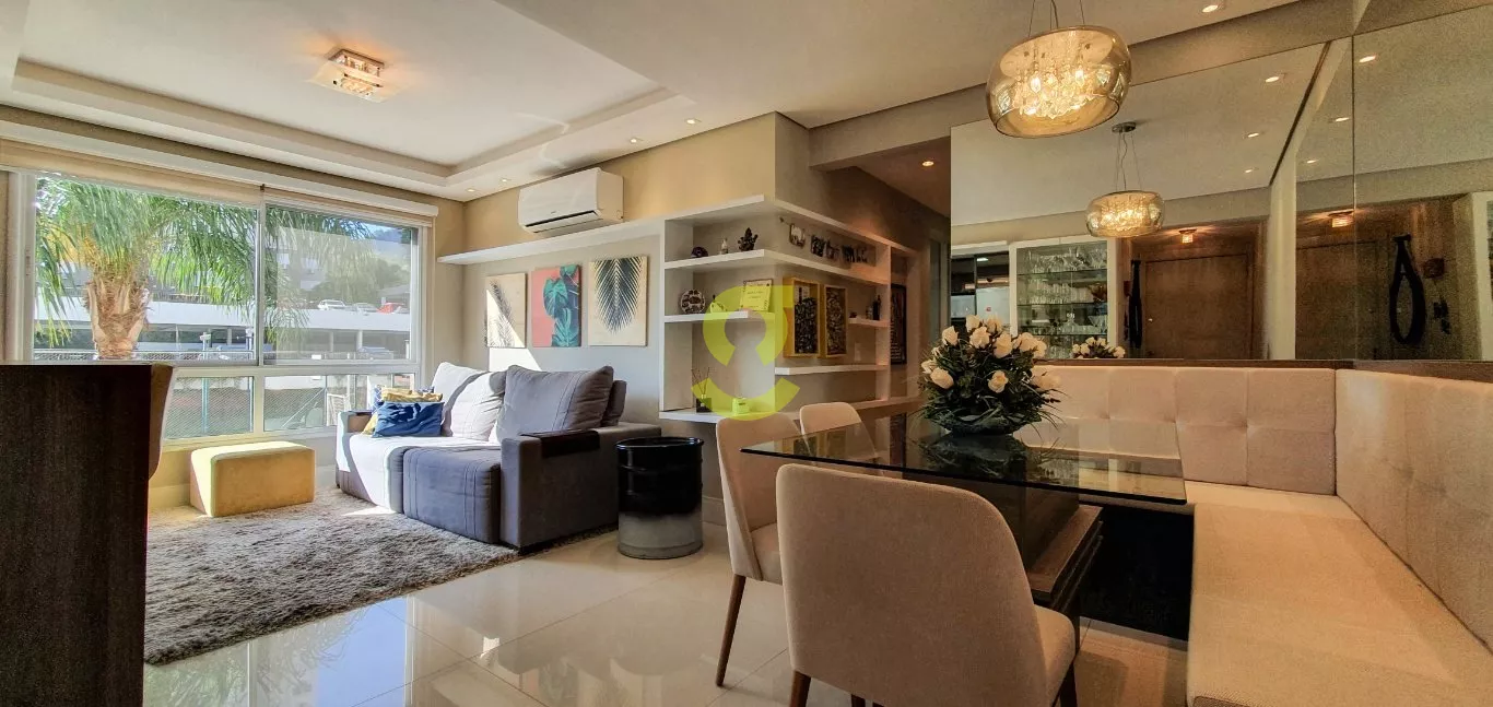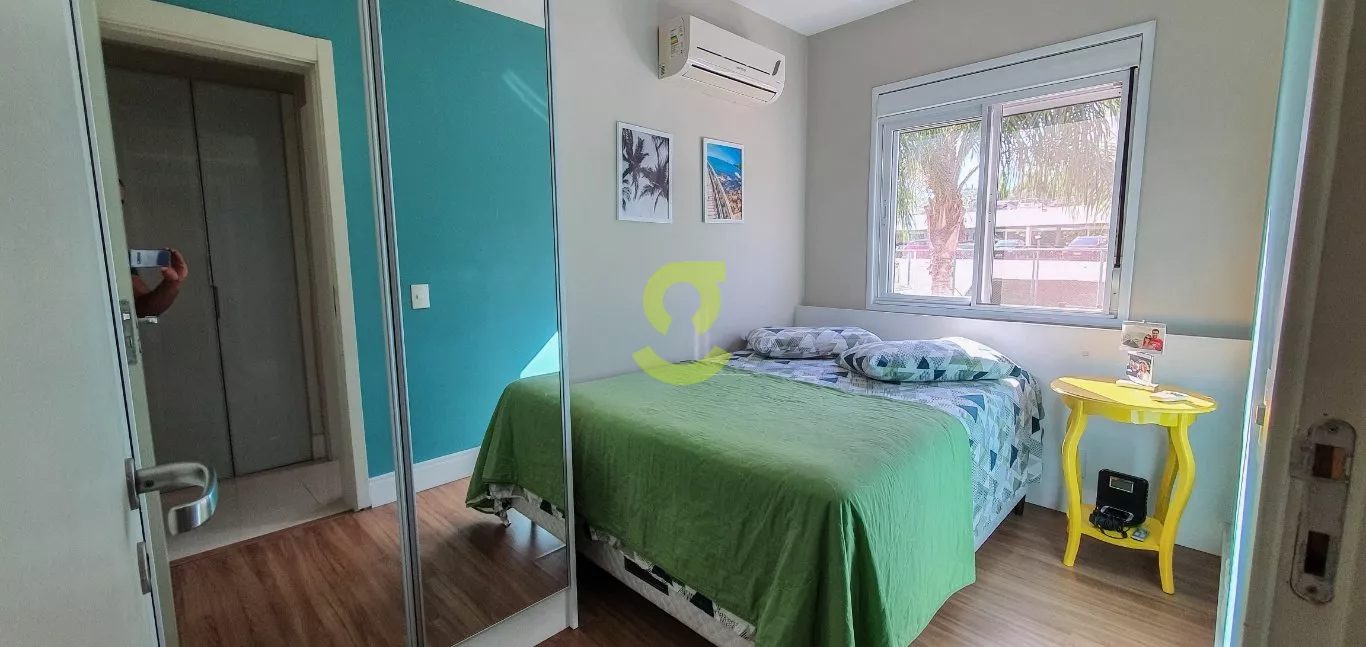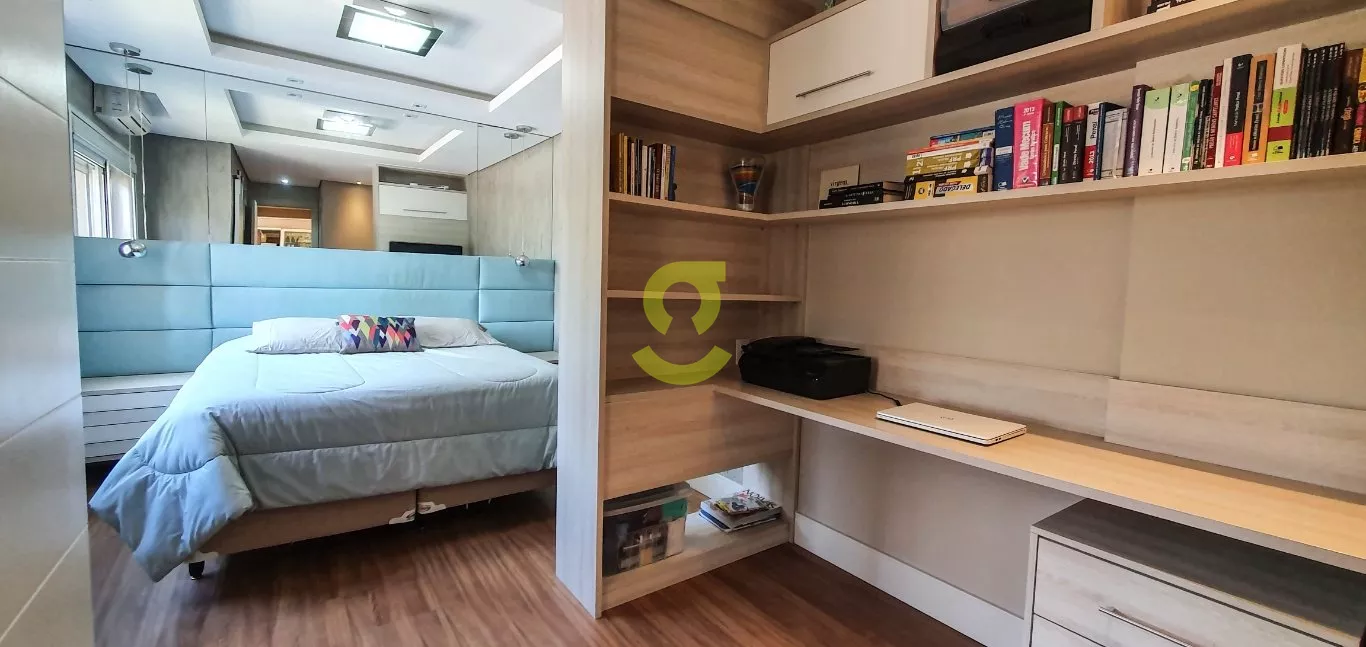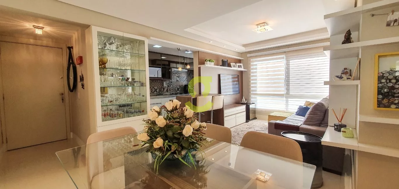 Excelente apartamento semi mobiliado, ficam todos os móveis fixos, living dois ambientes, cozinha com churrasqueira, fogão e forno elétrico, área de serviço com junker, lavabo, 1 dorm com roupeiro e ar condicionado, 1 dorm transformado em closet e 1 dormitório suite com ar condicionado. Uma vaga de garagem escriturada. Condomínio com portaria 24hs, 2 playground, salão de festa infantil, salão de festa adulto, sala de jogos, academia, piscina adulto e infantil, brinquedoteca, casa na arvore, espaço relax, lan housem, mercado quadrado.