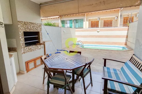 Excelente casa triplex, semi nova de 272m² privativos, 1º piso: lareira, lavabo, sala de jantar e estar c/ ar condicionado, cozinha montada, pátio c/ churrasqueira, piscina e banheiro. 2º piso: 3 dormitórios todos com sacada, sendo uma suíte c/ ar condicionado, closet e banheira de hidromassagem. 3º piso sótao amplo com churrasqueira, lareira, ar condicionado e banheiro.