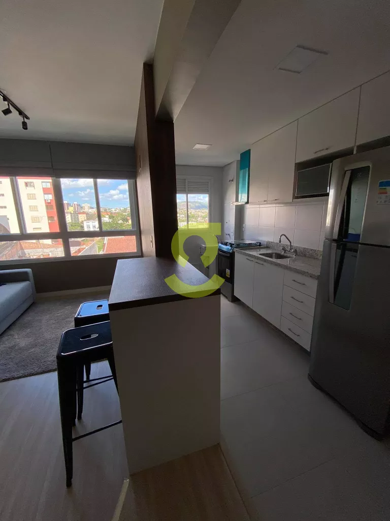 Ótimo apartamento, semi mobiliado, piso laminado, living 3 ambientes, cozinha americana com os móveis sob medida, 2 dormitórios, sendo uma suíte. Banheiros já com os móveis. Condomínio com portaria, 2 elevadores, academia e salão de festa. Próximo a Av. Protásio Alves.