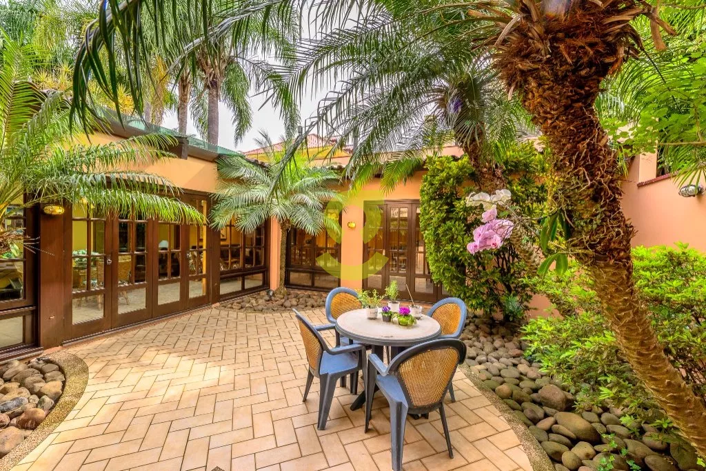 Hall de Entrada, Gabinete, Lavabo junto ao Hall de Entrada, Lavabo junto ao Ambiente da Churrasqueira, Estar social com 125 m2, Lareira, Ambiente de Churrasqueira Rotativa, Ampla Copa Cozinha, Quarto de Empregada, Banheiro de Empregada, Lavanderia, Despensa, Garagem para estacionar 4 carros, Pátio Social, Pátio de Serviço, Jardim Frontal.
