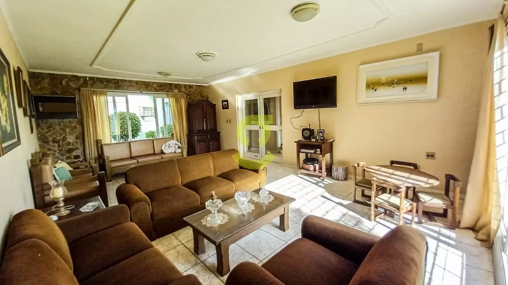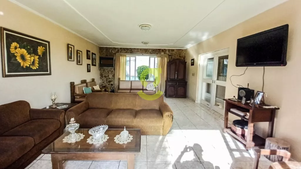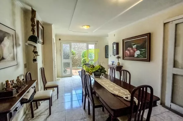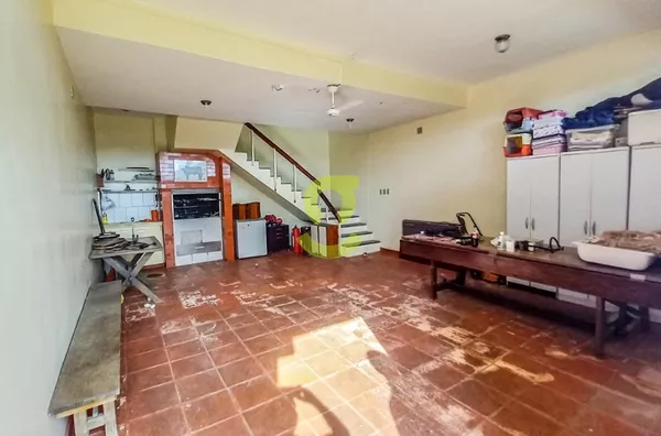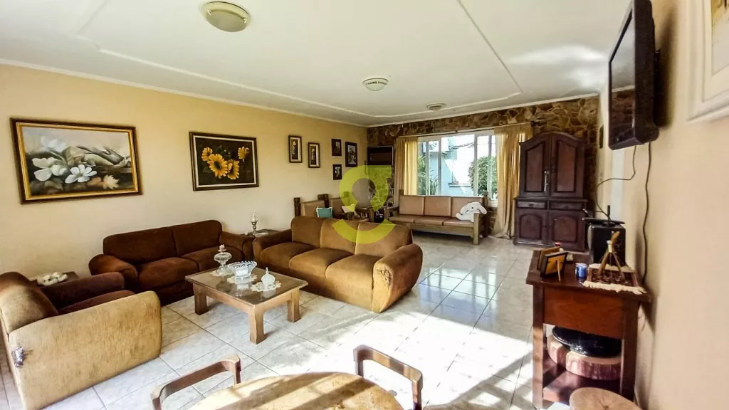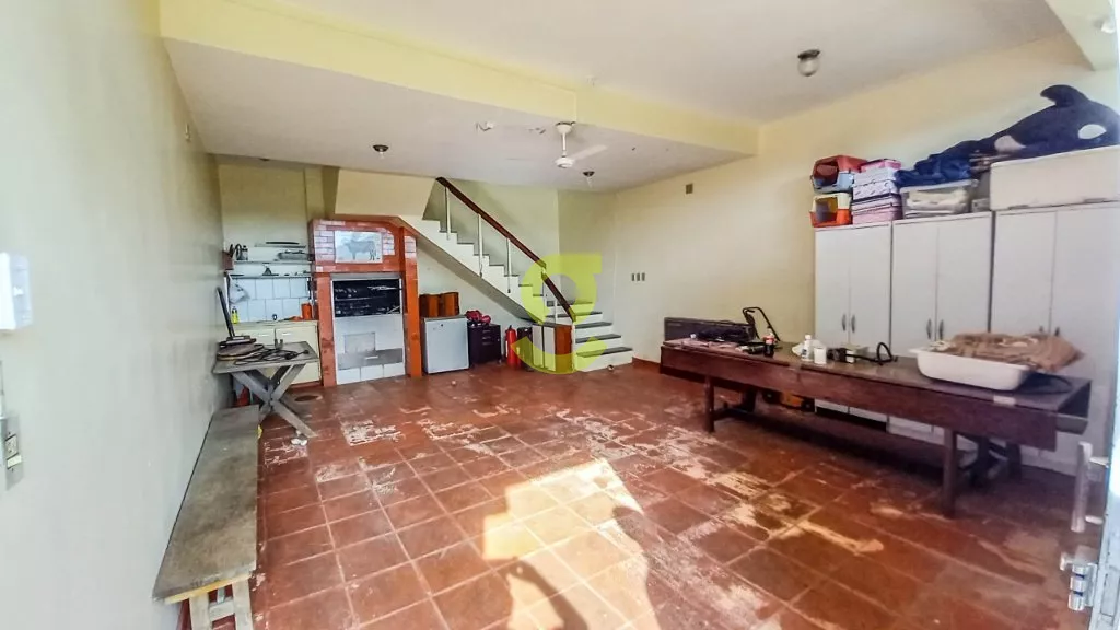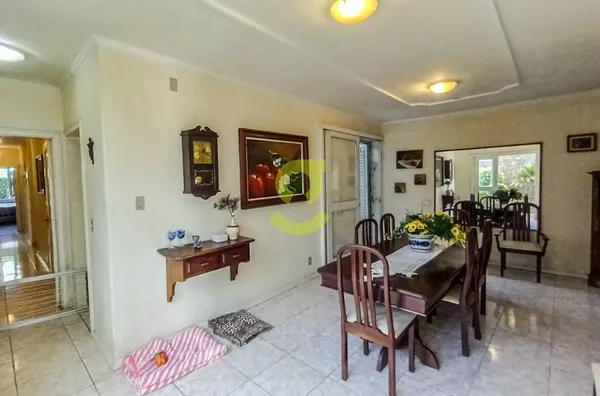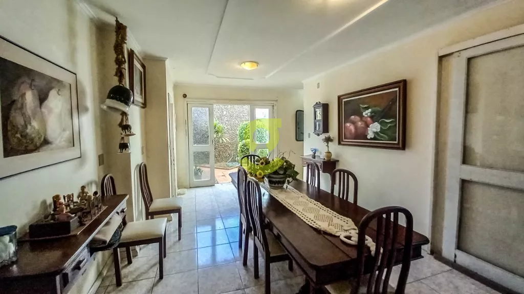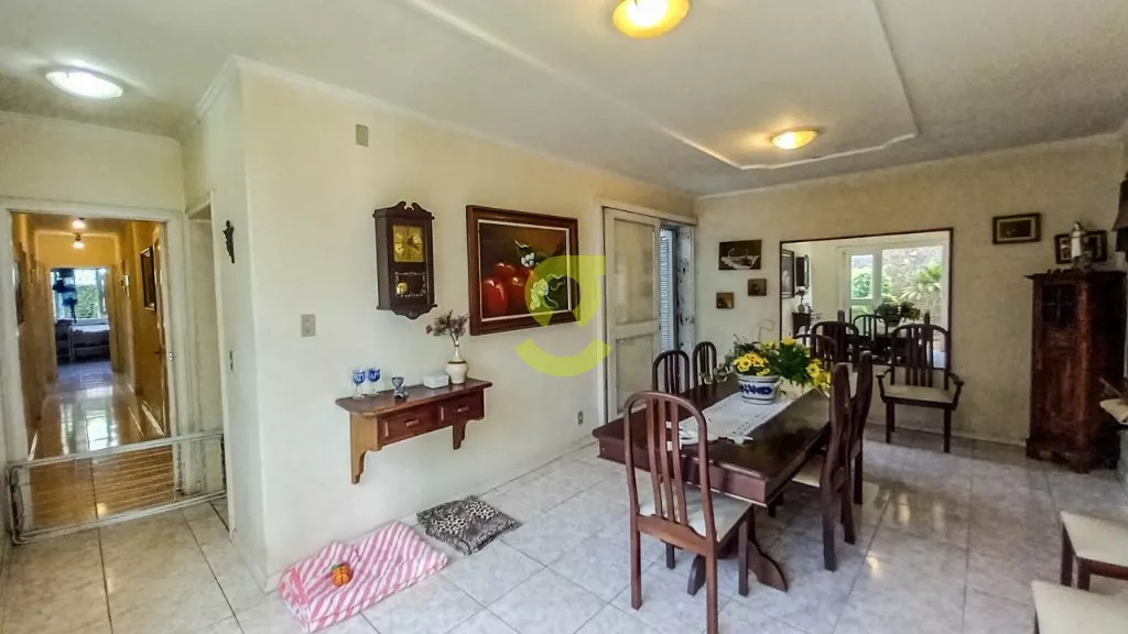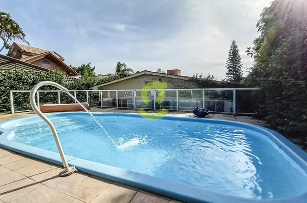 Esta casa de 254m² possui 4 dormitórios, sendo um suíte, um closet entre os quartos podendo ser um quinto quarto ou ampliar o espaço, Hall de entrada, lavabo, sala de jantar e sala de estar com um belo jardim de inverno entre elas, copa, 2 gabinetes, cozinha, lavanderia, dependencia de empregada, dispensa, terraço, churrasqueira, um belo pátio com piscina cascata e solarium, garagem para até 2 carros cobertos e 1 descoberto, e casa já com piso pronto para possibilidade de fazer um segundo piso, podendo ampliar a casa para quase 500m².