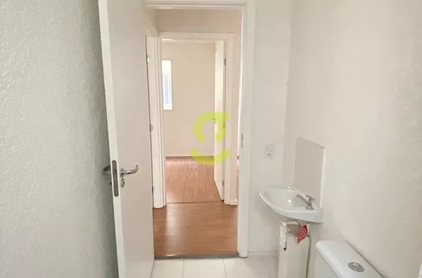 piso laminado, cozinha americana, área de serviço, gás central, banheiro social com ventilação e iluminação diretas, 1 vaga de estacionamento mais vaga para visitantes. Condomínio com segurança total, infra com salão de festas, churrasqueiras, playground. Portaria 24 horas e zelador.