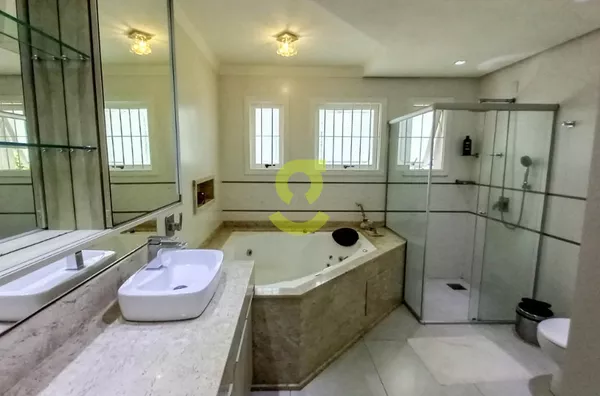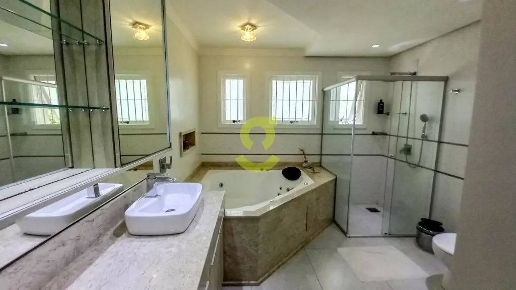 Esta casa incrível de aproximadamente 380m² tem tudo que você precisa, onde não há onde encontrar erros. Casa muito bem projetada e funcional, riqueza em cada detalhe e cantinho da casa, primeiro piso com garagem coberta para dois carros, e duas vagas descobertas, sala de estar e sala de jantar, acabamento em gesso e lindos lustres, piso porcelanato de 80cm, mesa de vidro para oito lugares, sala de estar com poltronas e mesas espelhadas, um lavabo na entrada, escritório com moveis sobre medida, jardim de inverno, uma linda sala social com lareira, piscina aquecida em um belo pátio com deck e poltronas, salão de festas com churrasqueira, banheiro, coocktop, pia, móveis, uma ampla lavanderia com armários, lavadora e secadora de roupa, dispensa para guardar suas compras, mais um banheiro social, dependência de empregada, junker elétrico, cozinha toda mobiliada e equipada, com moveis planejados, eletros de última geração, cristaleira, ilha e muito espaço, no segundo piso temos outra sala com home teather, sofás e sacada, podendo até se tornar um outro dormitório, banheiro social entre os quartos com hidromassagem, um dormitório com móveis sobre medida, ar-condicionado e closet, outro dormitório com closet desocupado, e a suíte master, com closet, cama, cabeceira com espelhos, closet, um lindo banheiro com duas cubas e pias, uma bela e grande banheira de hidromassagem e box de vidro com chuveiro a gás.