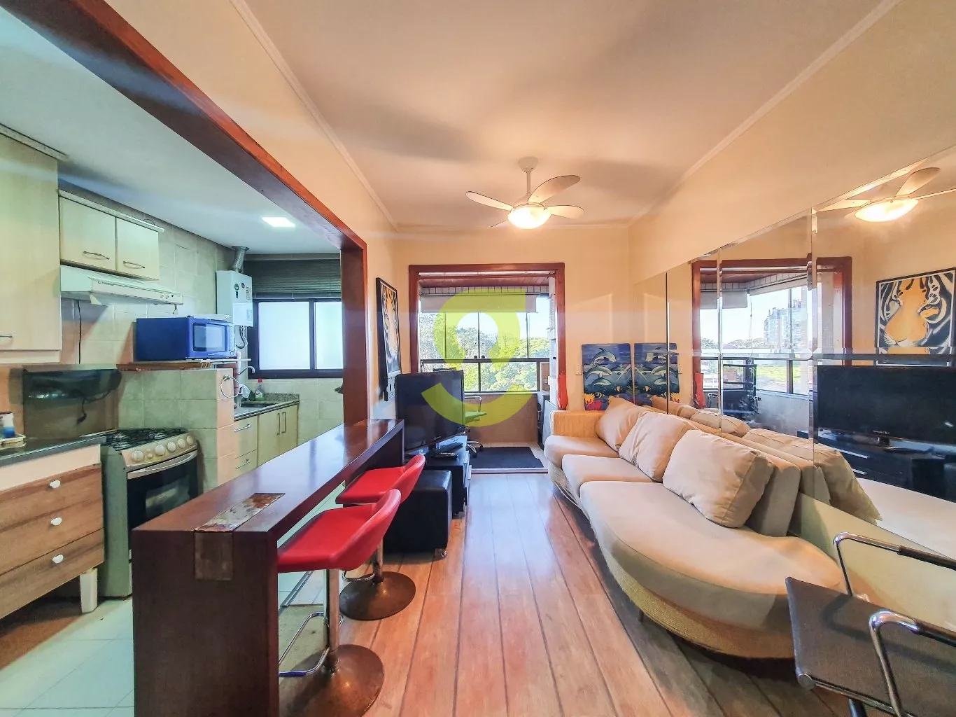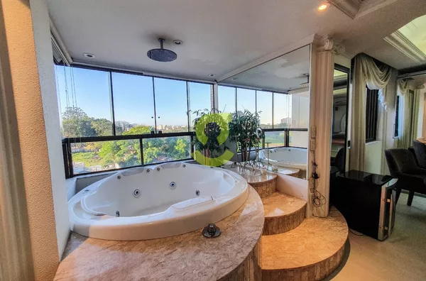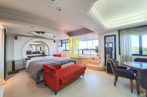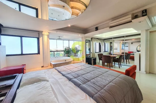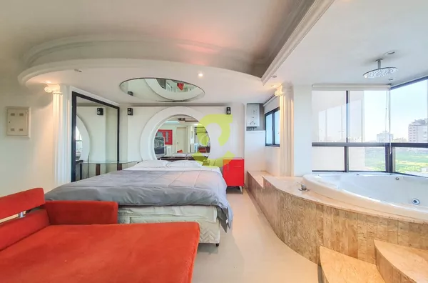 Apartamento DUPLEX totalmente mobiliado de 94m², cozinha americana com área de serviço integrada, aquecimento de passagem já instalado, sala de estar com ventilador de teto, sacada integrada com churrasqueira, lareira móvel, 1 dormitório e 1 banheiro com hidromassagem vertical, dos pés a cabeça.