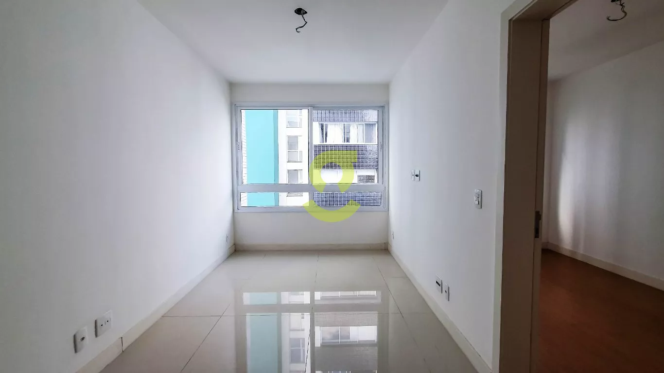 Apartamento de 1 dormitório com 55m², banheiro social, área de serviço separada, churrasqueira, piso aquecido e esperas para ar-condicionado.