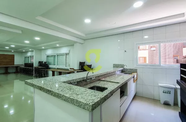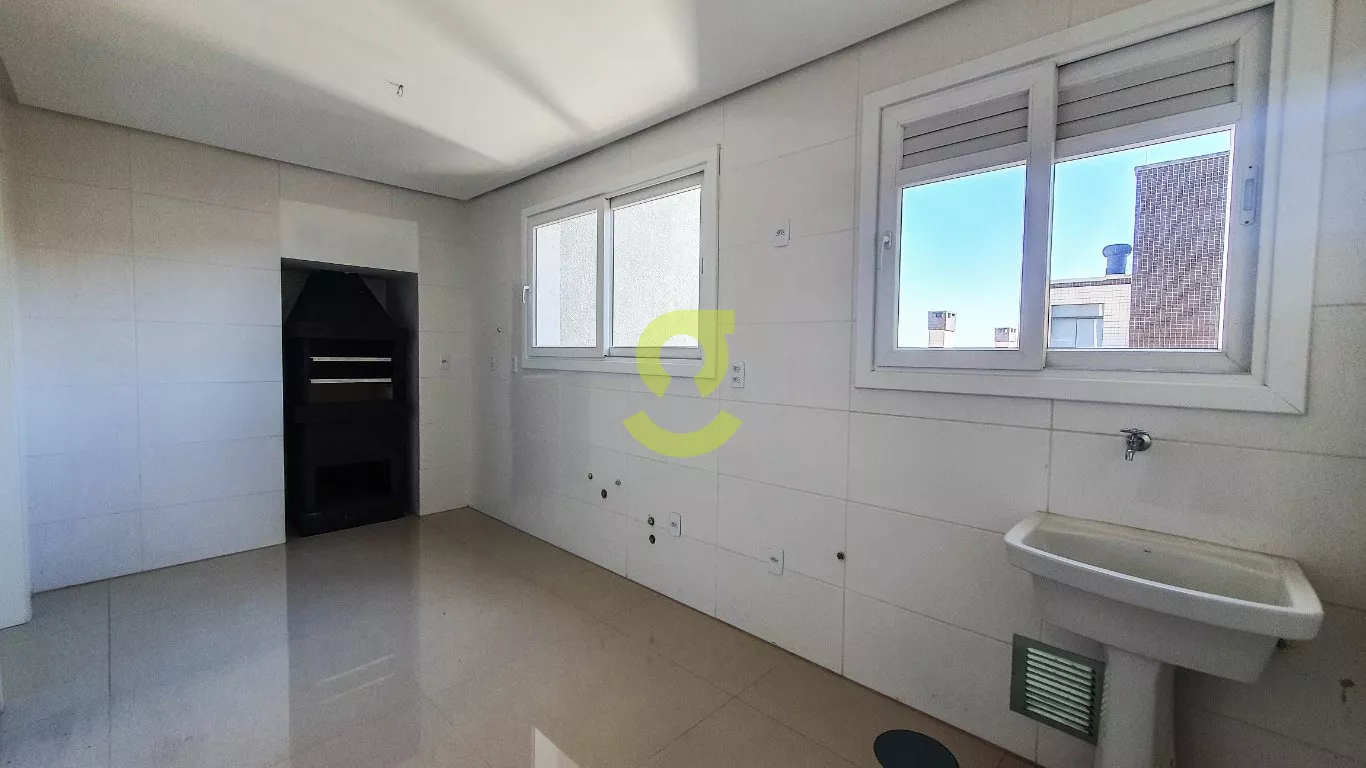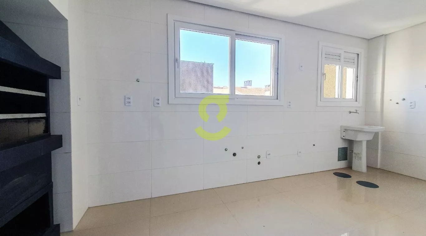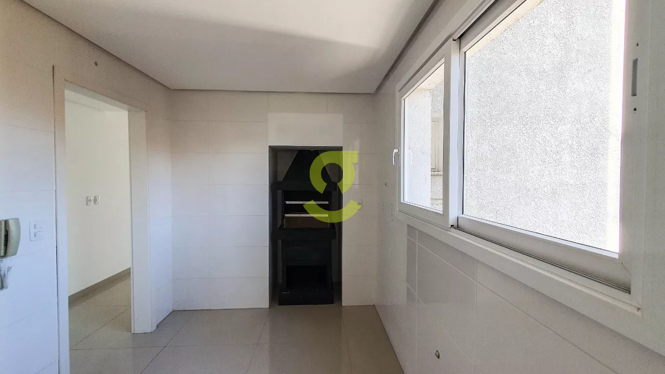 Apartamento com 82m², ampla sala com ótima luminosidade, piso porcelanato, espera para lareira, cozinha e área de serviço com churrasqueira, espera para ar-condicionado em todos os cômodos, banheiro social, 2 dormitórios sendo uma suíte.