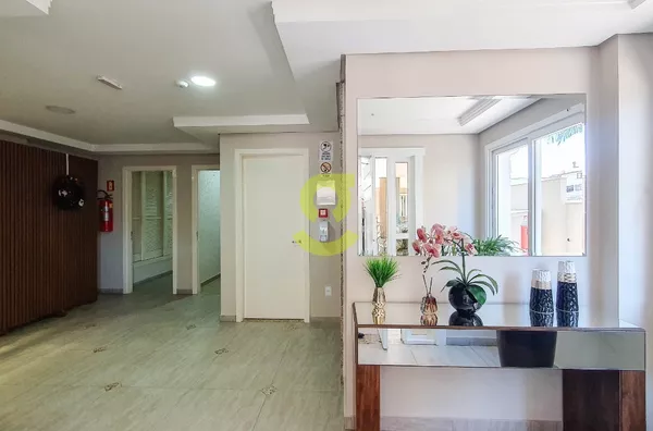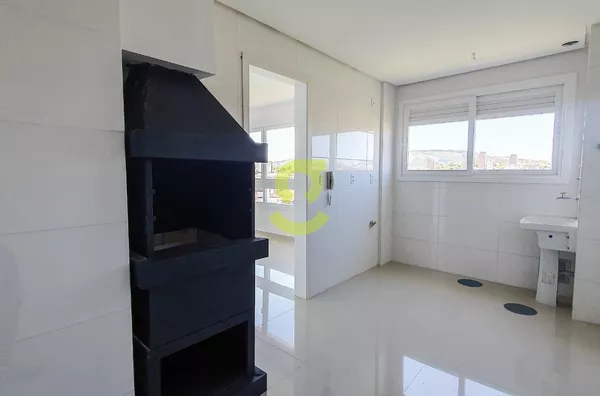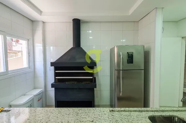 Apartamento com 74m², ampla sala com ótima luminosidade, piso porcelanato, espera para lareira, cozinha e área de serviço com churrasqueira, espera para ar-condicionado em todos os cômodos, banheiro social, 2 dormitórios sendo uma suíte.
