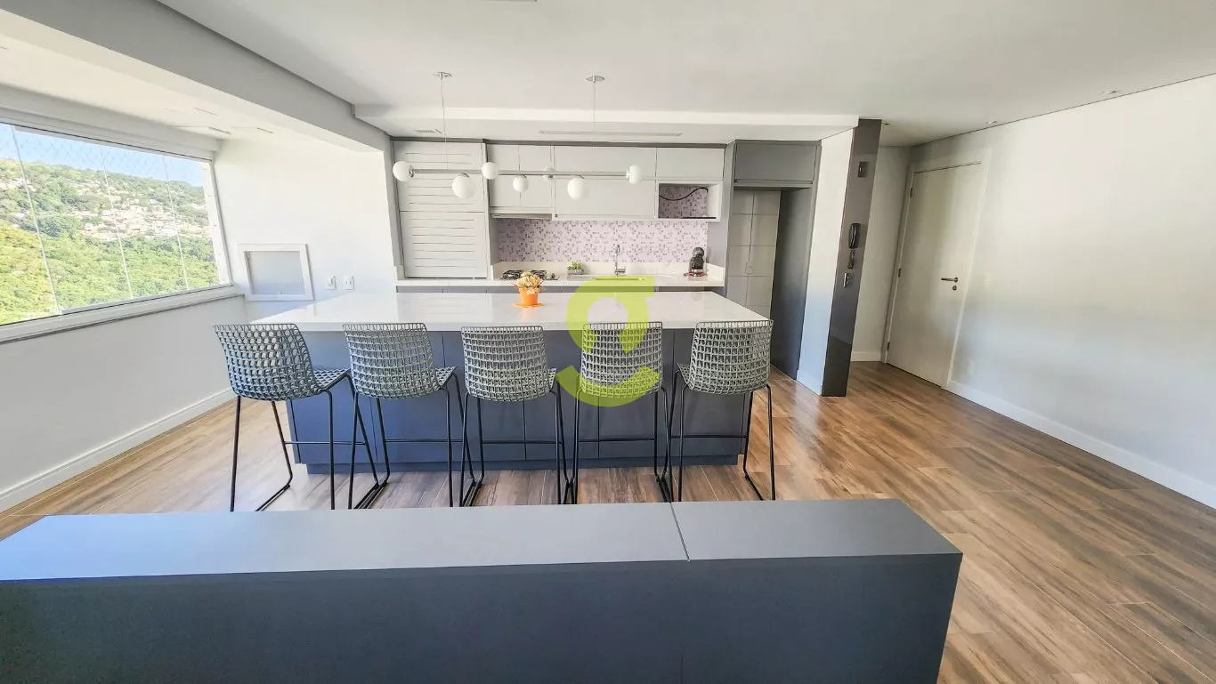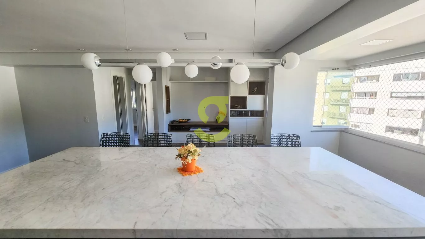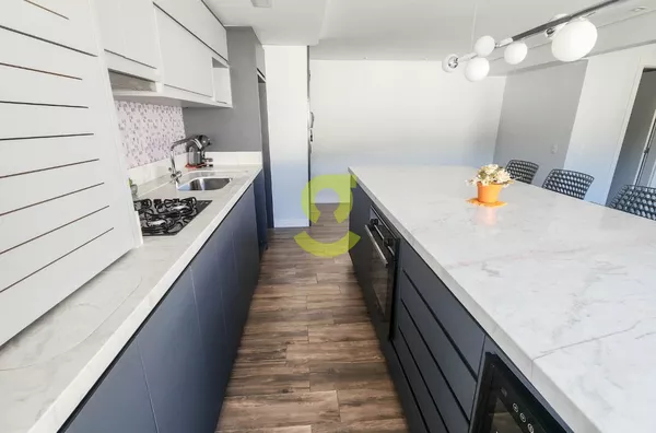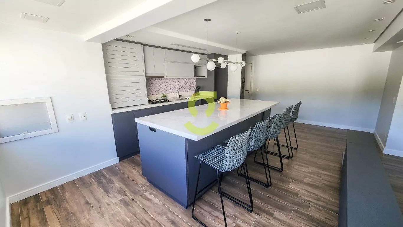 Ótimo apartamento no ultimo andar, vista permanente, 79m privativos, planta de 3 dormitórios transformado em 2 dormitórios, ar condicionado em todos os ambientes, living 3 ambientes living em conceito aberto, churrasqueira, forno eletrico, cooktop, adega, microondas, 2 dormitórios sendo uma suite, 2 vagas de garagem cobertas. Condominio com infraestrutura completa de lazer, portaria 24hs, 2 salões de festa, pisca de cooper, quadra para basquete, mercado, academia, piscina adulto e infantil, brinquedoteca, quiosque com churrasqueira, quadra poliesportiva, salao de festa infantil.