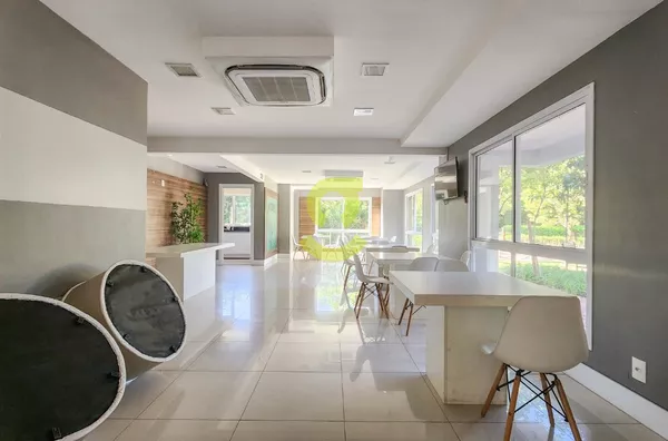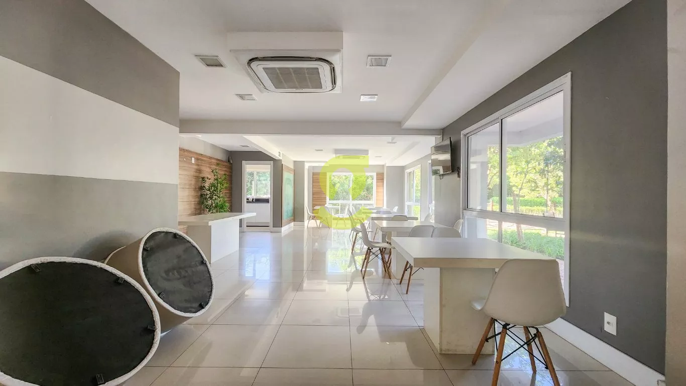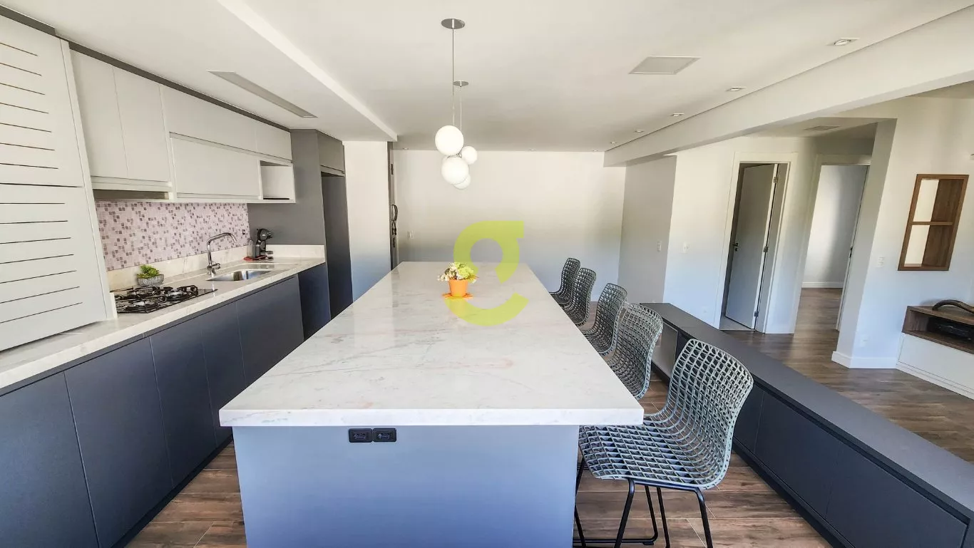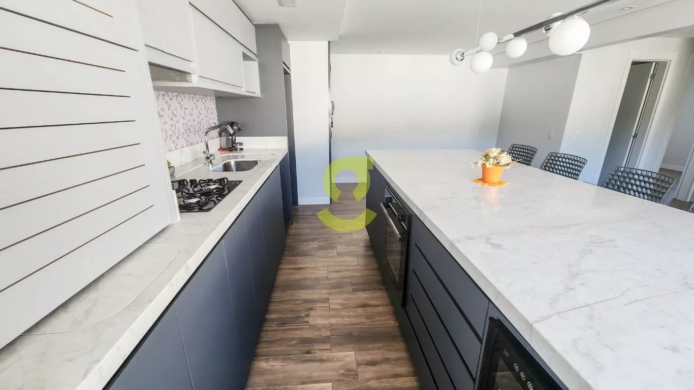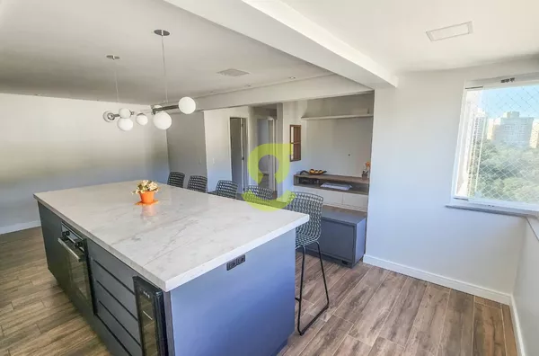 Ótimo apartamento no ultimo andar, vista permanente, 79m privativos, planta de 3 dormitórios transformado em 2 dormitórios, ar condicionado em todos os ambientes, living 3 ambientes living em conceito aberto, churrasqueira, forno eletrico, cooktop, adega, microondas, 2 dormitórios sendo uma suite, 2 vagas de garagem cobertas. Condominio com infraestrutura completa de lazer, portaria 24hs, 2 salões de festa, pisca de cooper, quadra para basquete, mercado, academia, piscina adulto e infantil, brinquedoteca, quiosque com churrasqueira, quadra poliesportiva, salao de festa infantil.