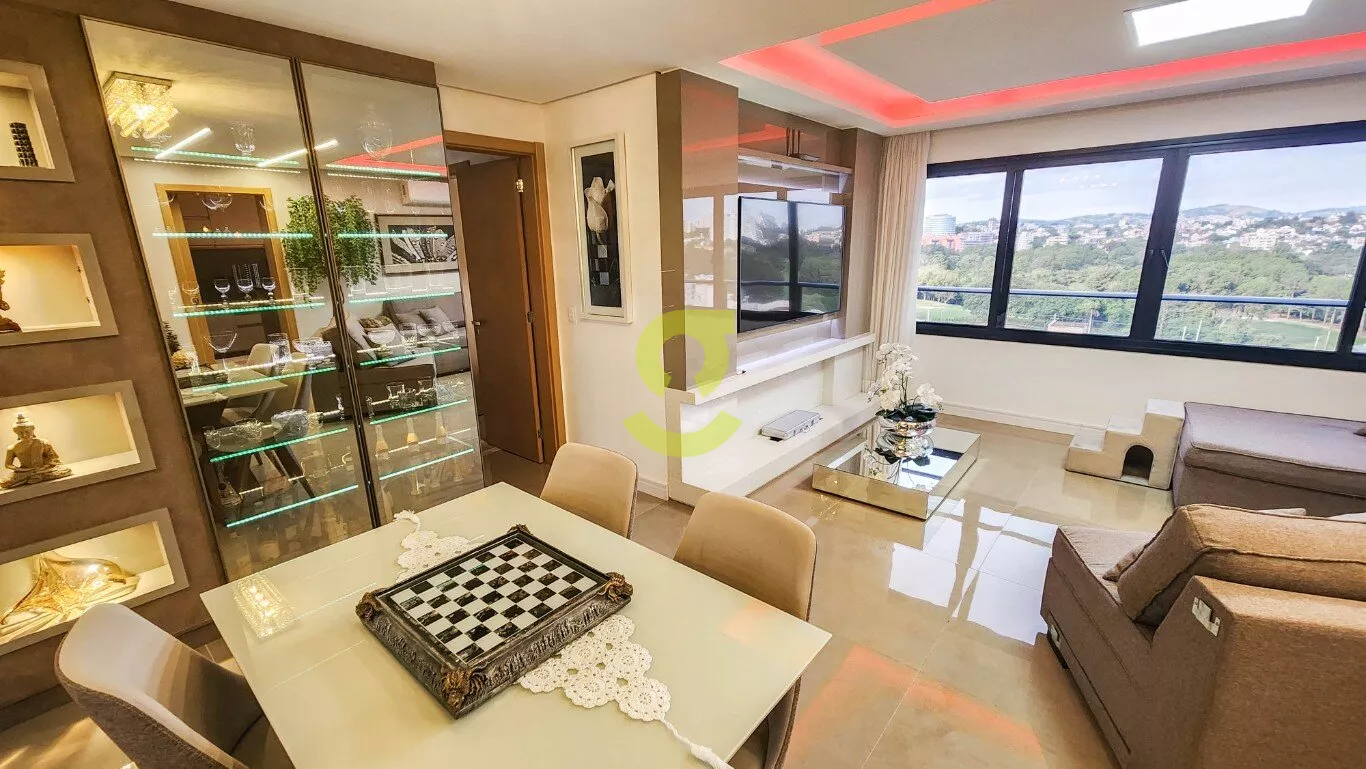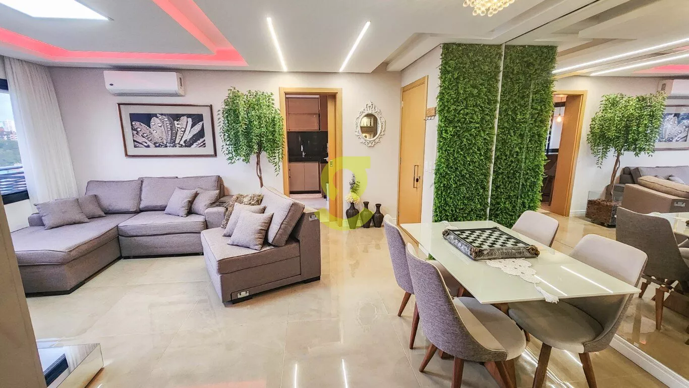 Espetacular apto MOBILIADO, ultimo andar, 102m priv, vista espetacular, living dois ambientes c/ decoração impecável, cozinha montada c/ churrasqueira, área de serviço c/ junker, banheiro AUX, 3 dorm, sendo uma suite e duas vagas de garagem coberta e c/ deposito. Condomínio com portaria 24hs, salão de festa, academia, brinquedoteca, sala de jogos, academia, playground, piscina e lareira ecológico ao ar livre. Localização excelente a poucas quadras do Country e Iguatemi.
