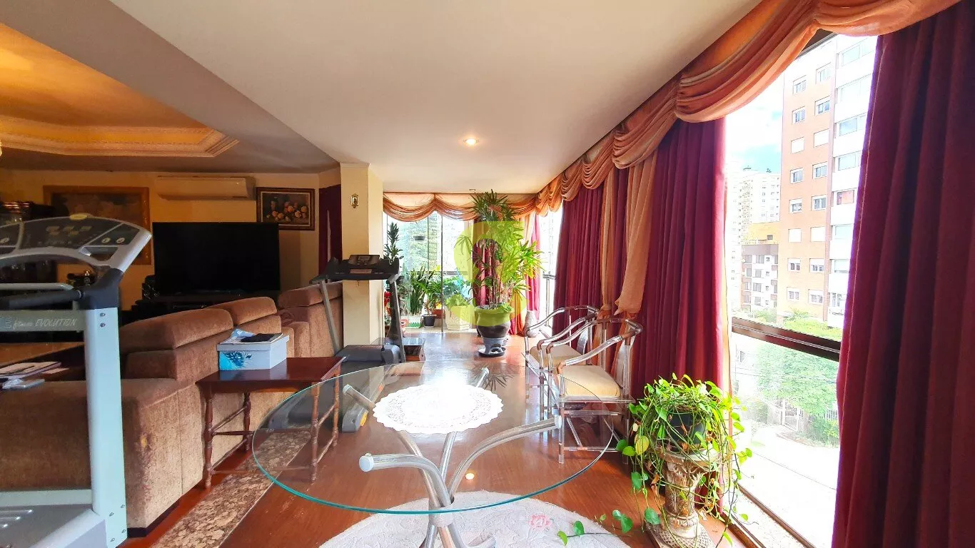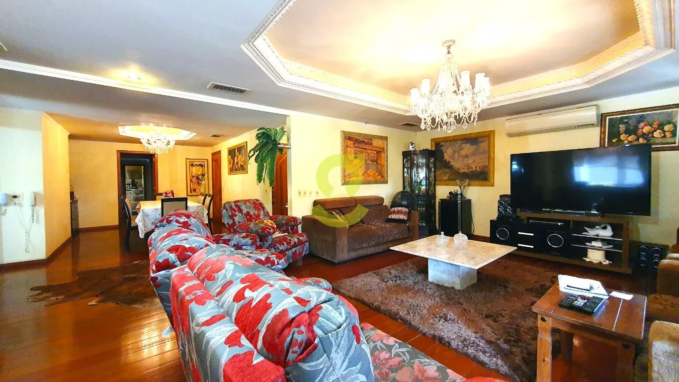 Incrível apartamento com 270m², decorado, são 3 dormitórios sendo 2 suítes com hidromassagem, 1 suíte master com closet e sacada integrada, sala com até 4 ambientes, sala de jantar com lindo lustre, sala de estar e televisão, sacada integrada, lareira, churrasqueira, cozinha, área de serviço separada com banheiro e dependência (ou dispensa), e são 3 vagas de garagem.