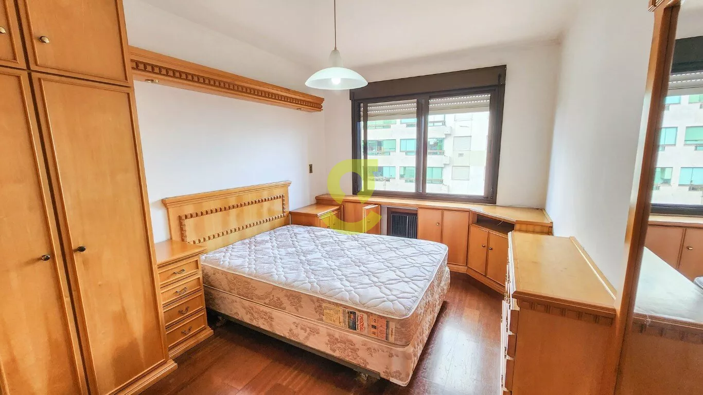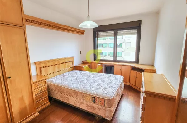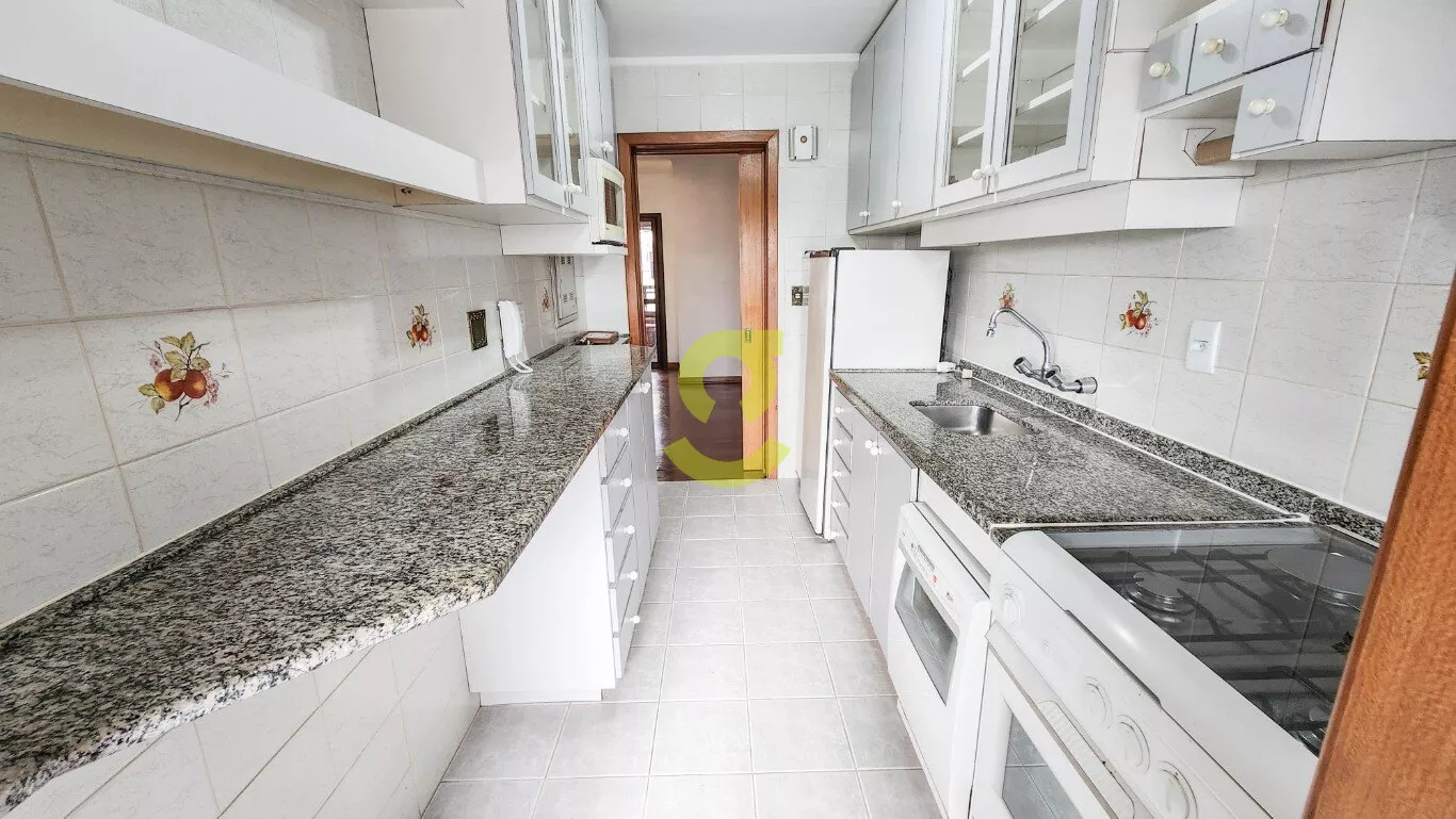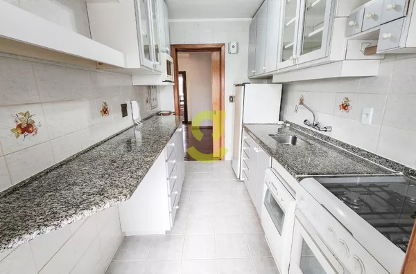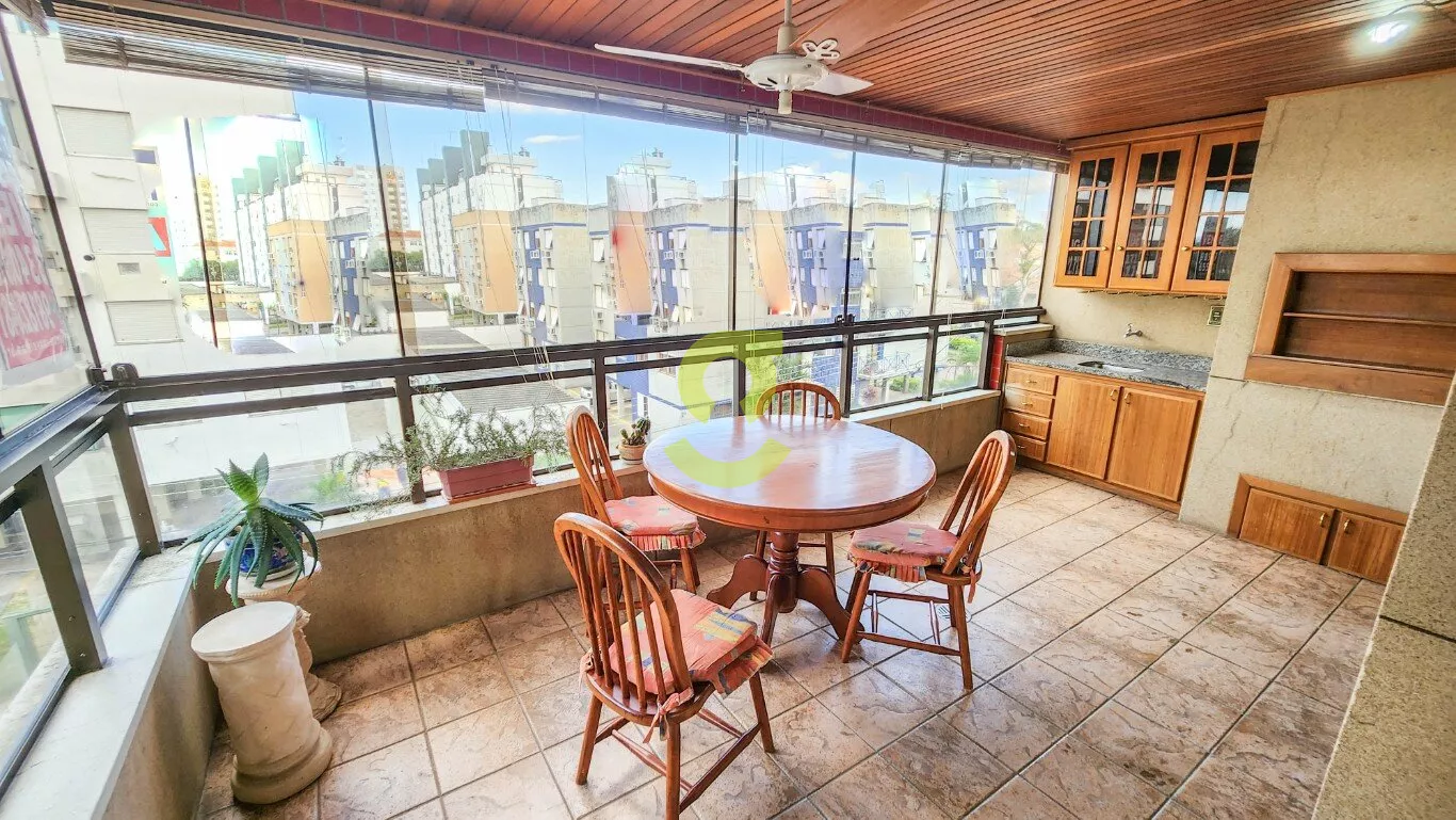 Apartamento semi mobiliado, 99m privativos, living dois ambientes, sacada c/ churrasqueira, cozinha montada, área de serviço separa c/ junker, lavabo, 2 dormitórios um com armário e ar condicionado, 1 vaga de garagem coberta. Condomínio com portaria 24hs, elevador, playground e salão de festa.