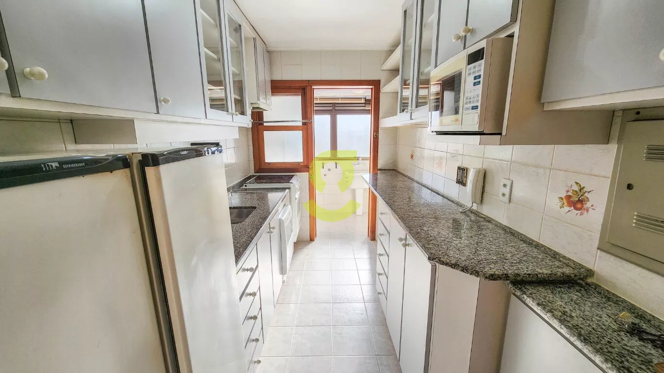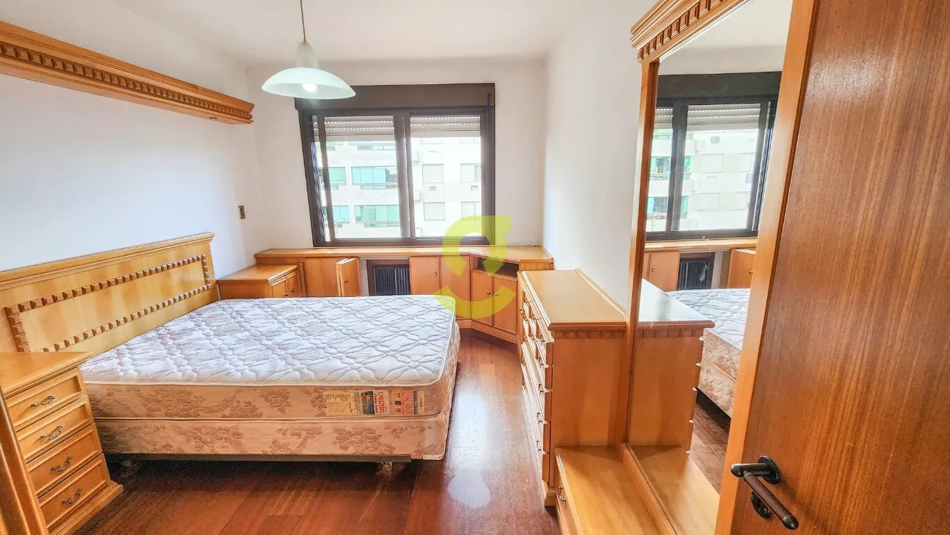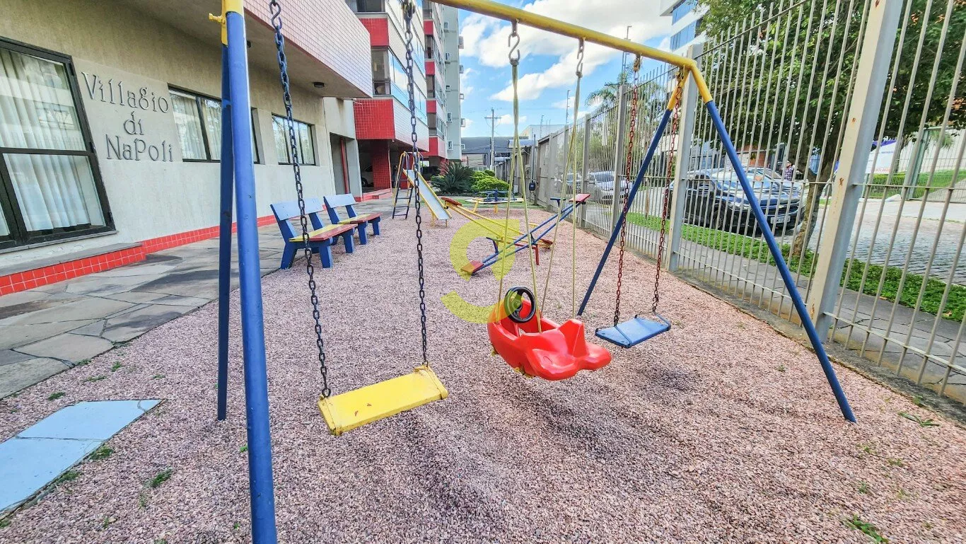 Apartamento semi mobiliado, 99m privativos, living dois ambientes, sacada c/ churrasqueira, cozinha montada, área de serviço separa c/ junker, lavabo, 2 dormitórios um com armário e ar condicionado, 1 vaga de garagem coberta. Condomínio com portaria 24hs, elevador, playground e salão de festa.