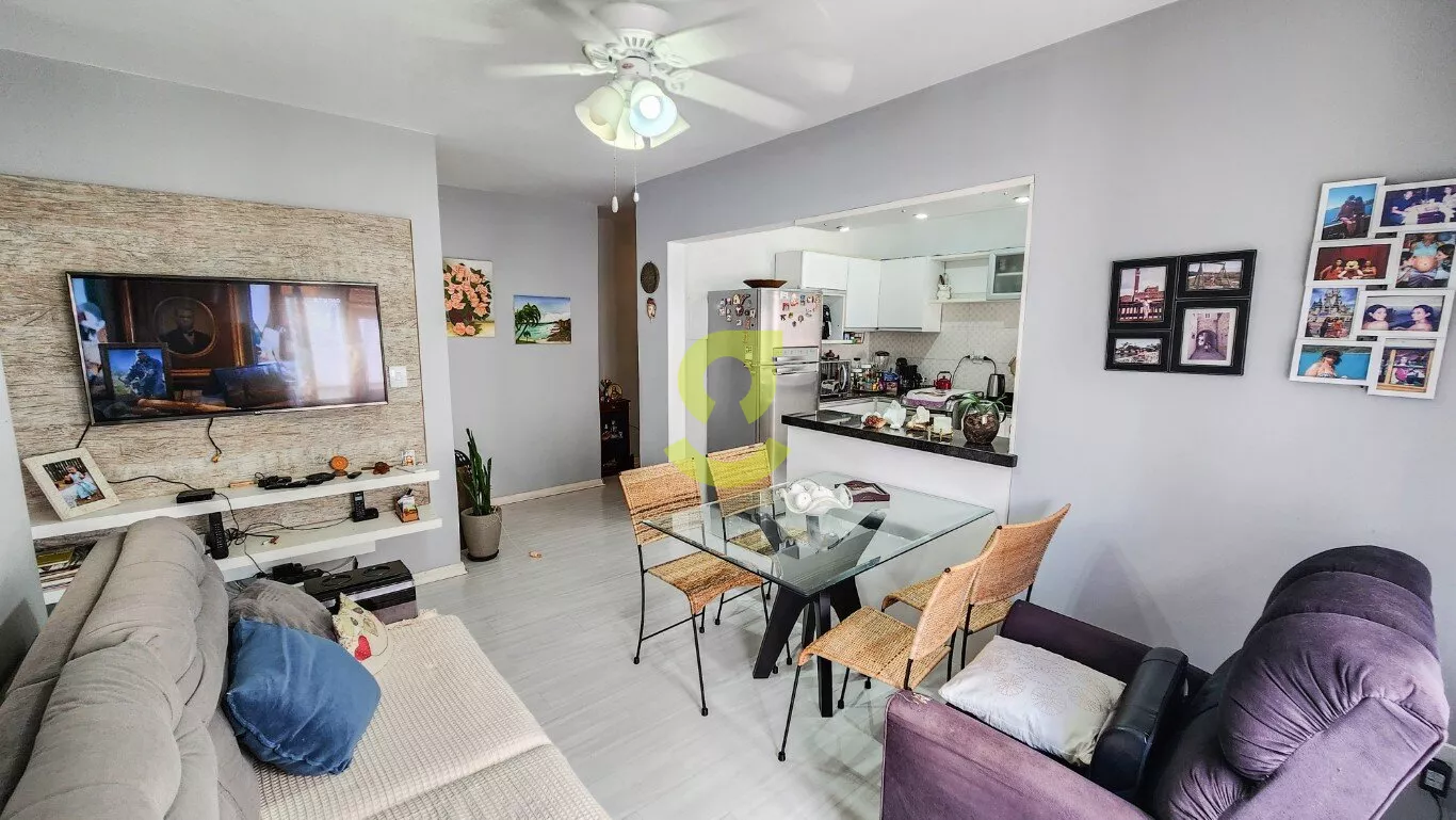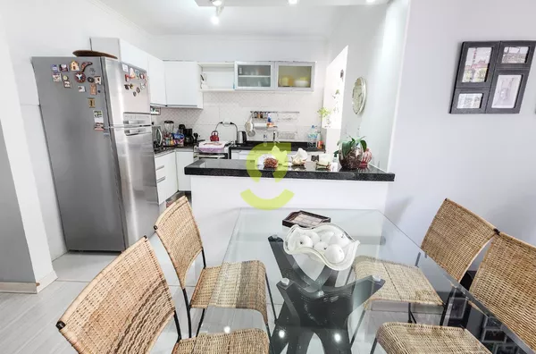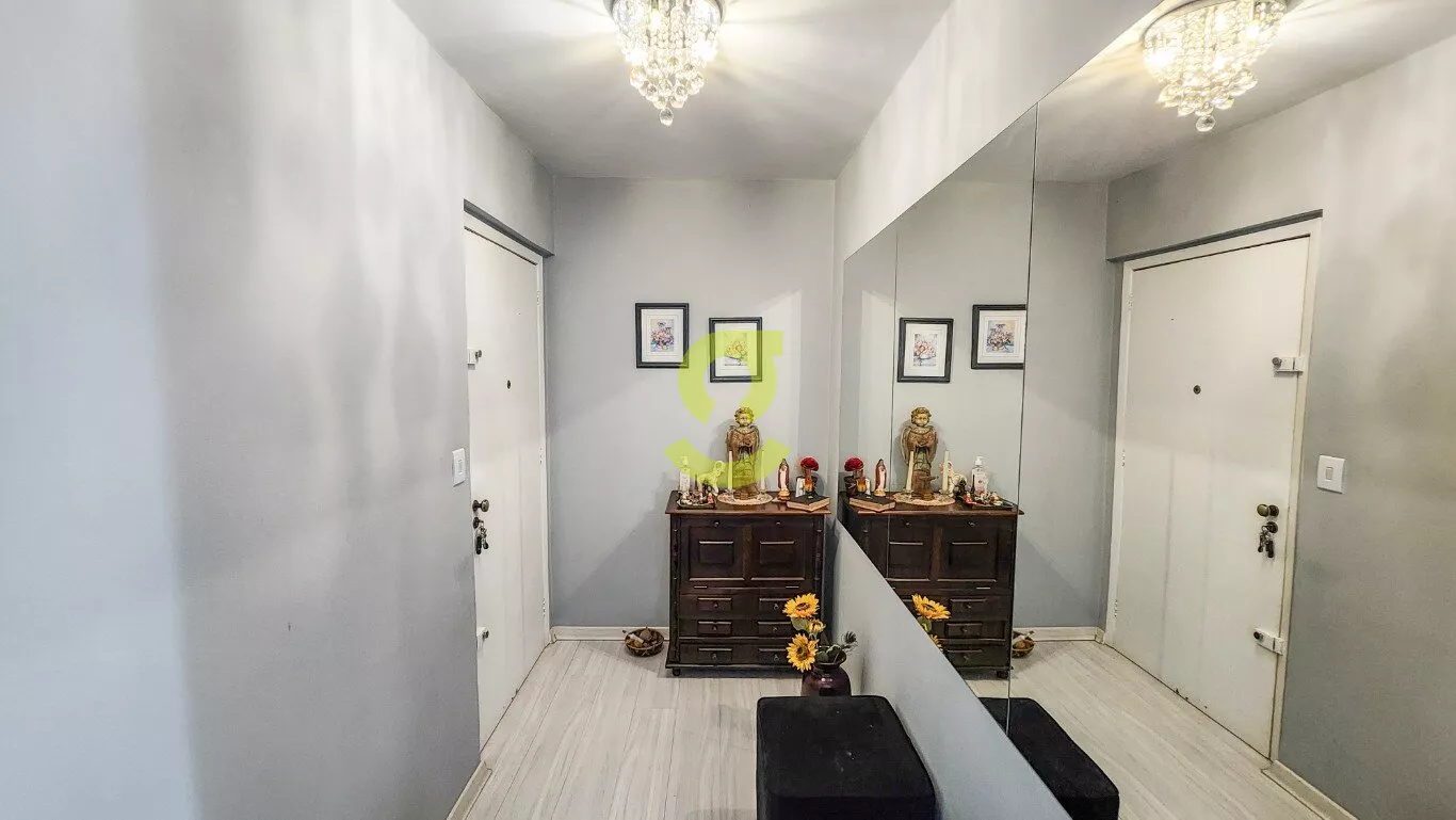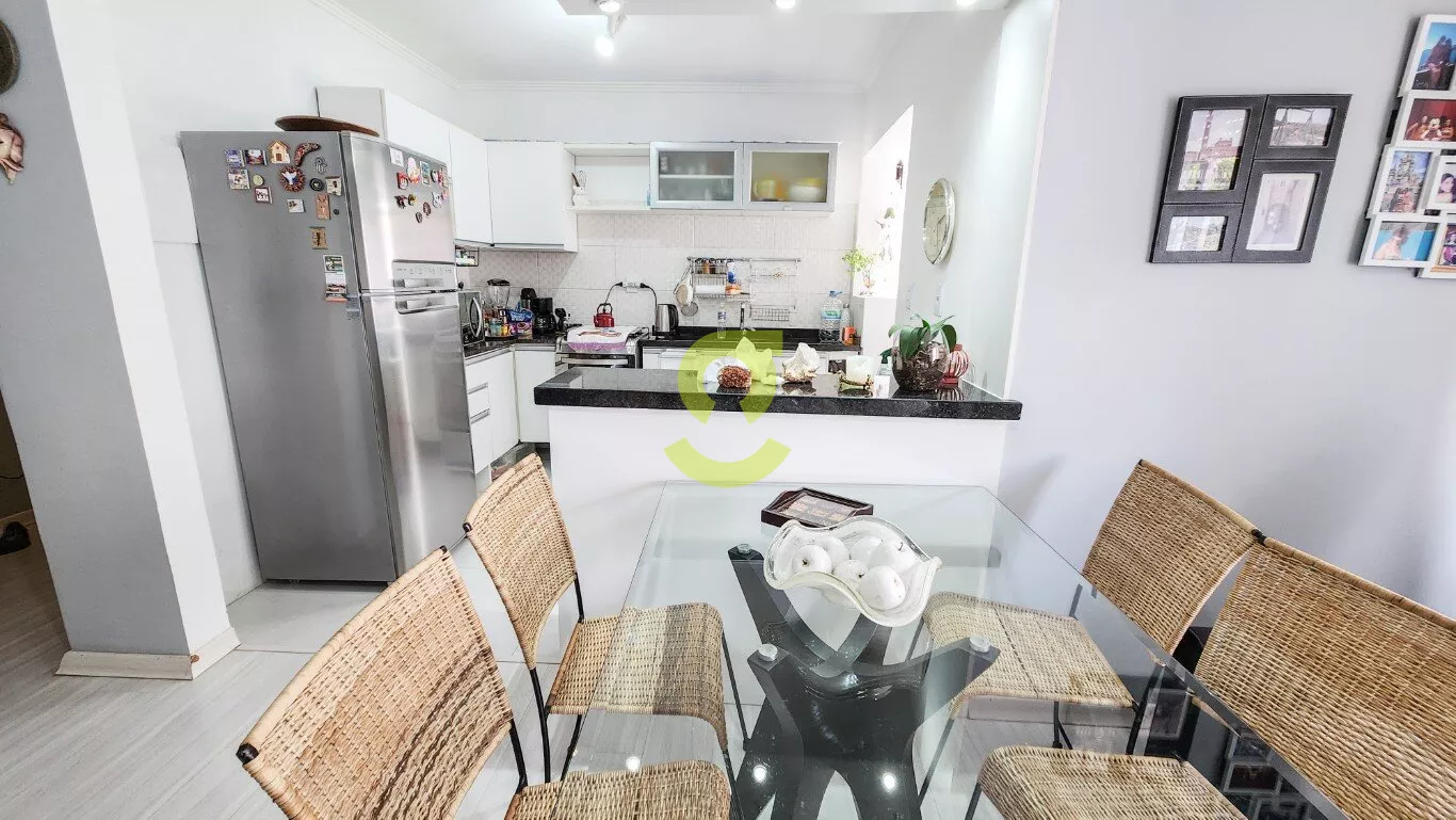 Ótimo apartamento reformando, semi mobiliado, 75m privativos, living com ar condicionado, cozinha americana c/ móveis planejados, ampla área de serviço c/ maquina de lavar roupa, dependência de empregada, banheiro aux. 2 dormitórios sendo um com armário, cama e ar condicionado. Uma vaga de garagem coberta e fechada. Localizado em frente a praça e uma quadra da avenida principal do bairro.