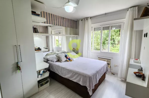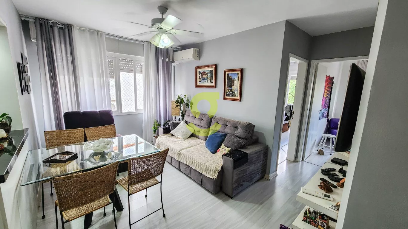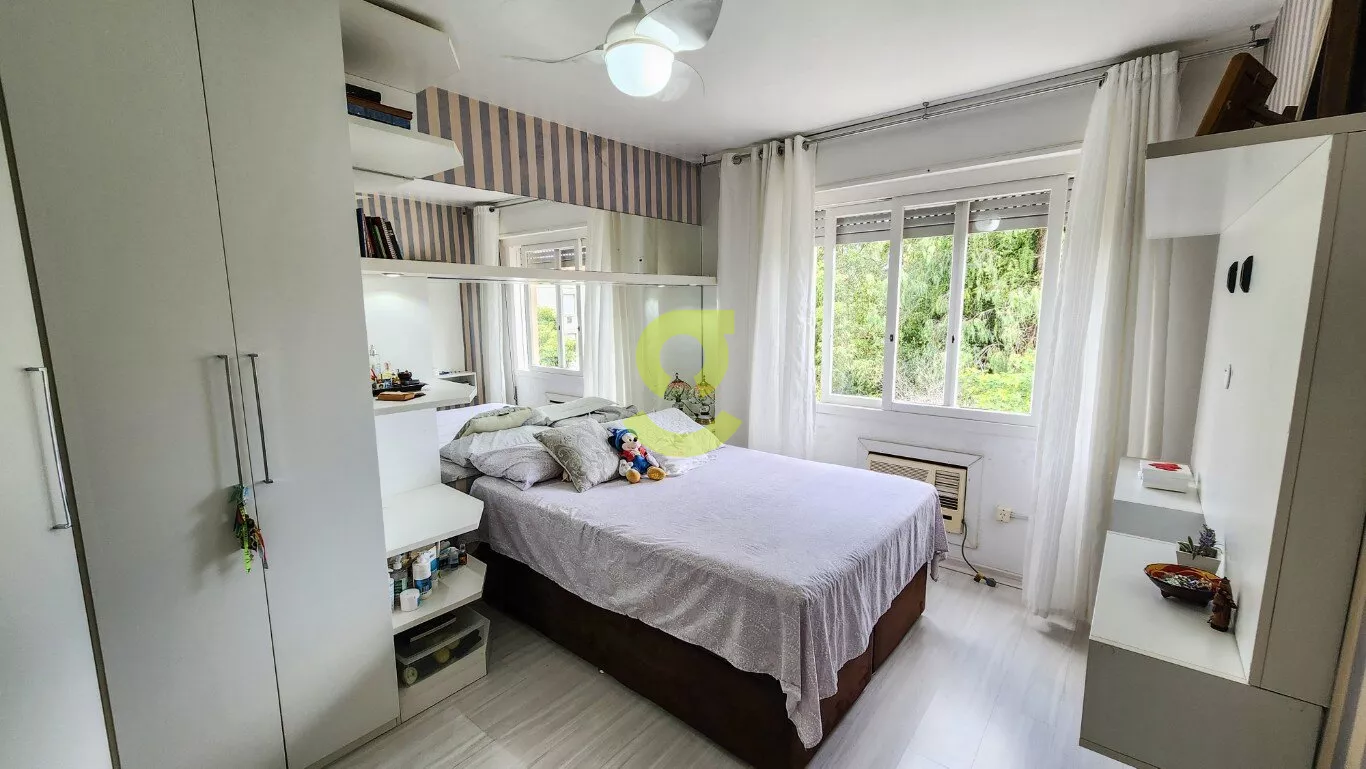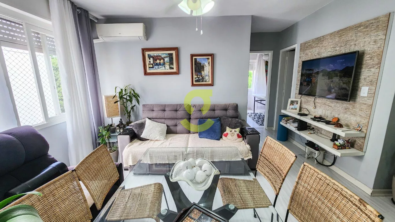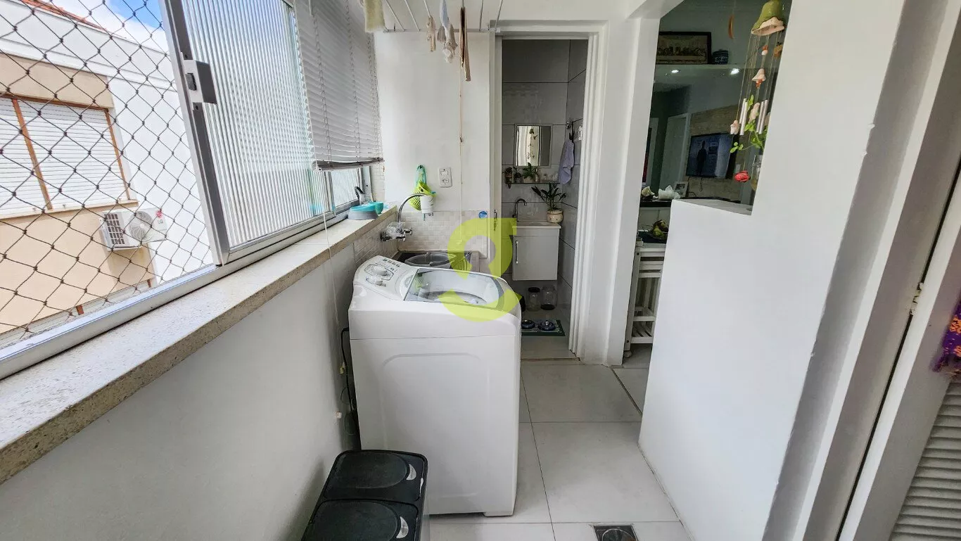 Ótimo apartamento reformando, semi mobiliado, 75m privativos, living com ar condicionado, cozinha americana c/ móveis planejados, ampla área de serviço c/ maquina de lavar roupa, dependência de empregada, banheiro aux. 2 dormitórios sendo um com armário, cama e ar condicionado. Uma vaga de garagem coberta e fechada. Localizado em frente a praça e uma quadra da avenida principal do bairro.